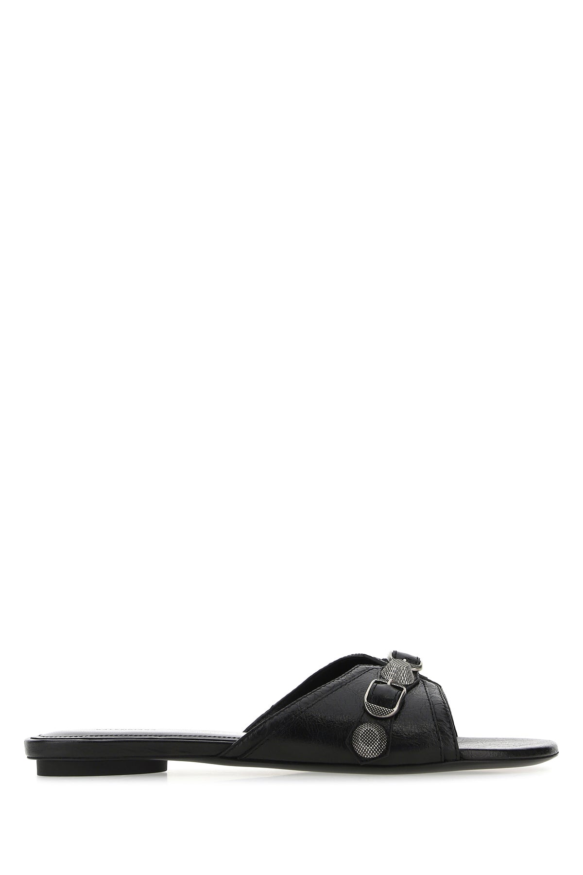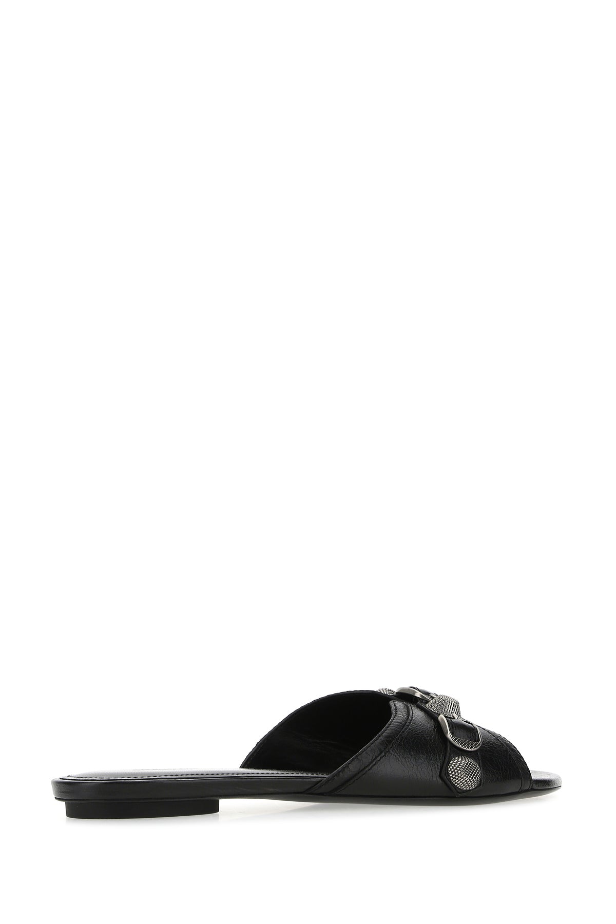 Slippers realizzate in pelle di agnello Arena arricchite da cinturino decorativo con maxi borchie metalliche sulla parte frontale.
