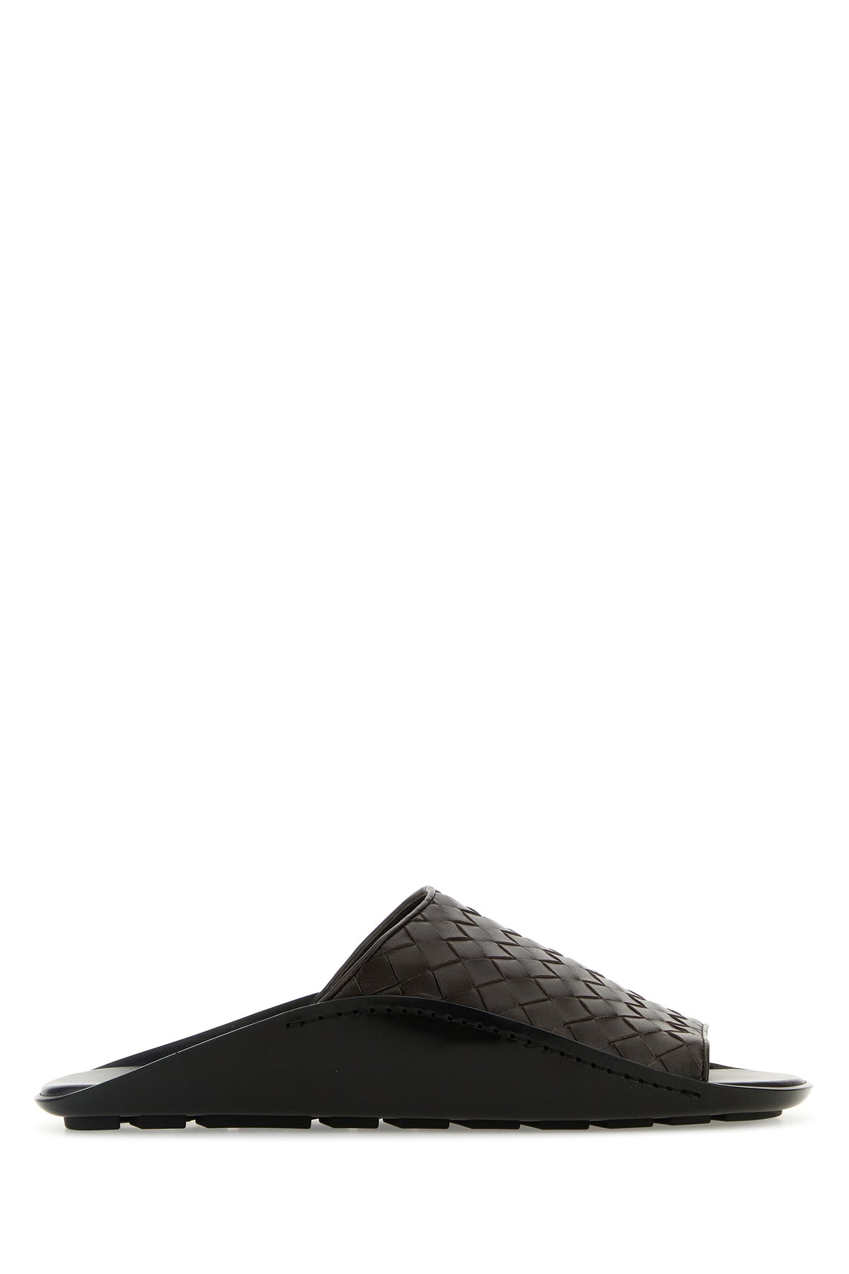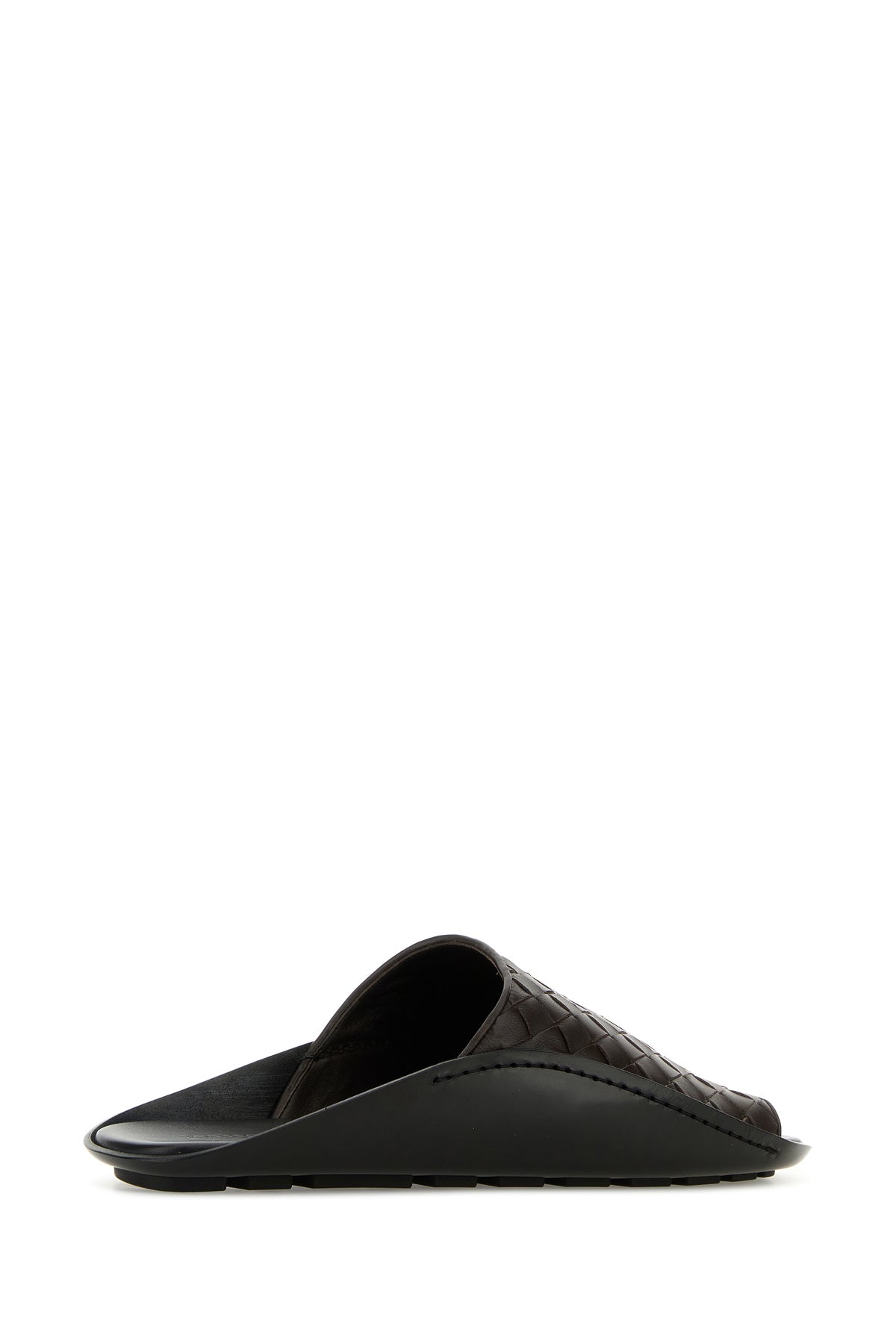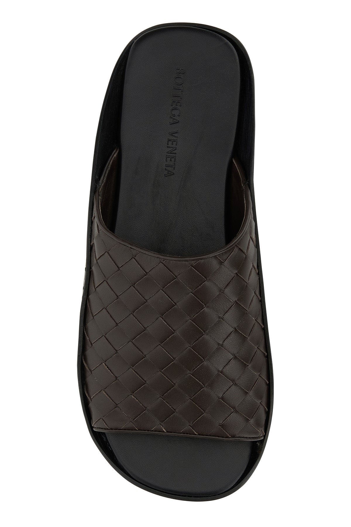 Slippers realizzate in pelle di agnello caratterizzate da iconico motivo Intrecciato su tutta la superficie.