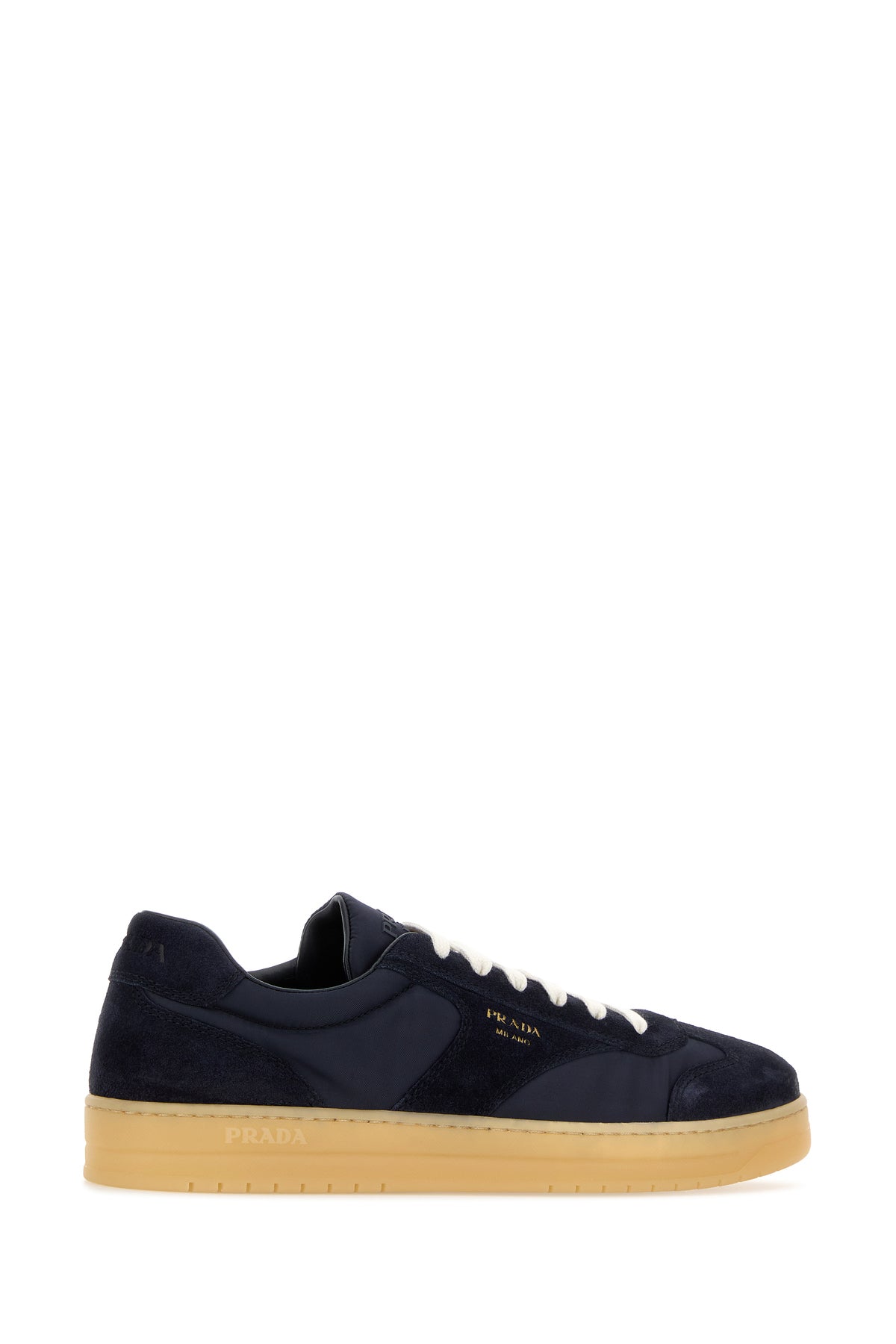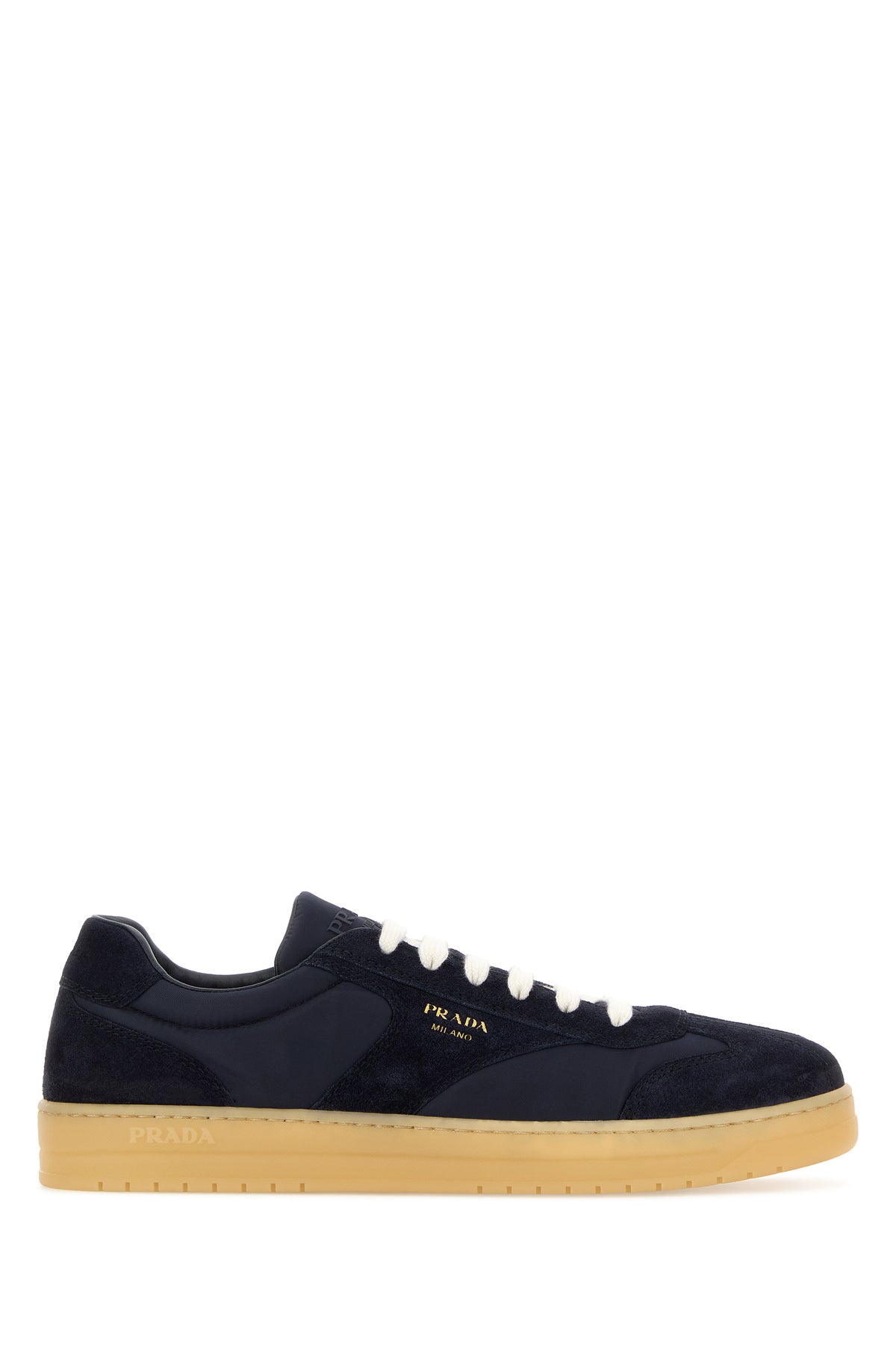 Sneakers realizzate in pelle scamosciata e Re-Nylon caratterizzate da logo stampato laminato sul lato e logo impresso sul tallone.
