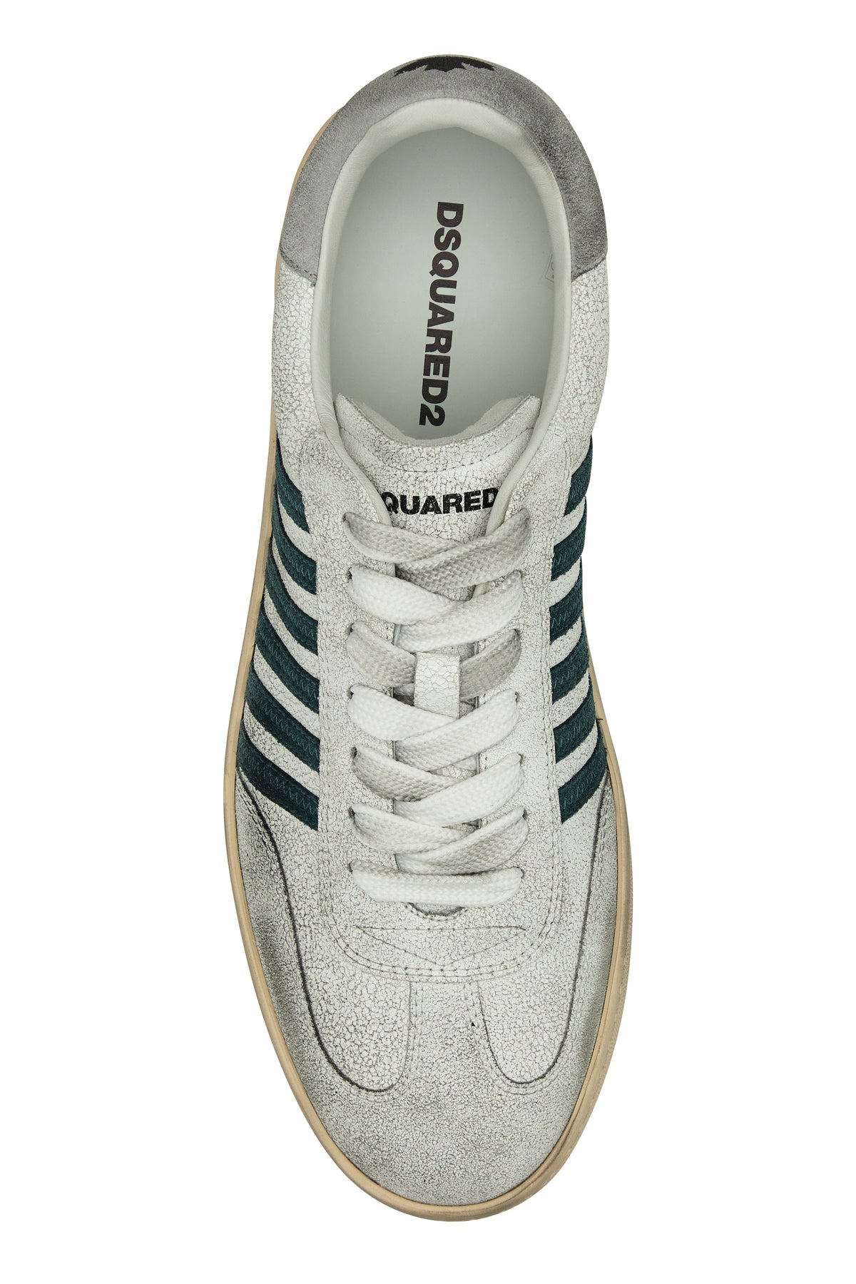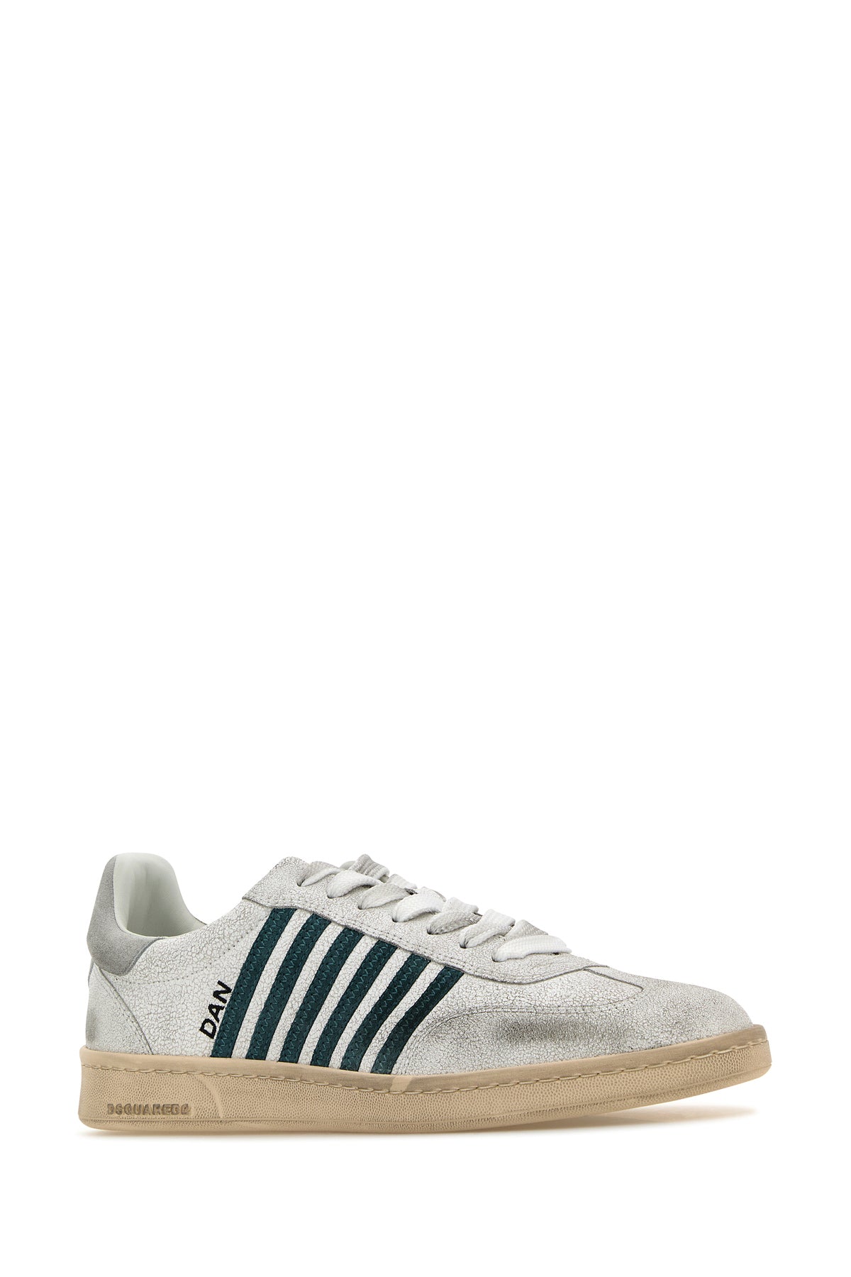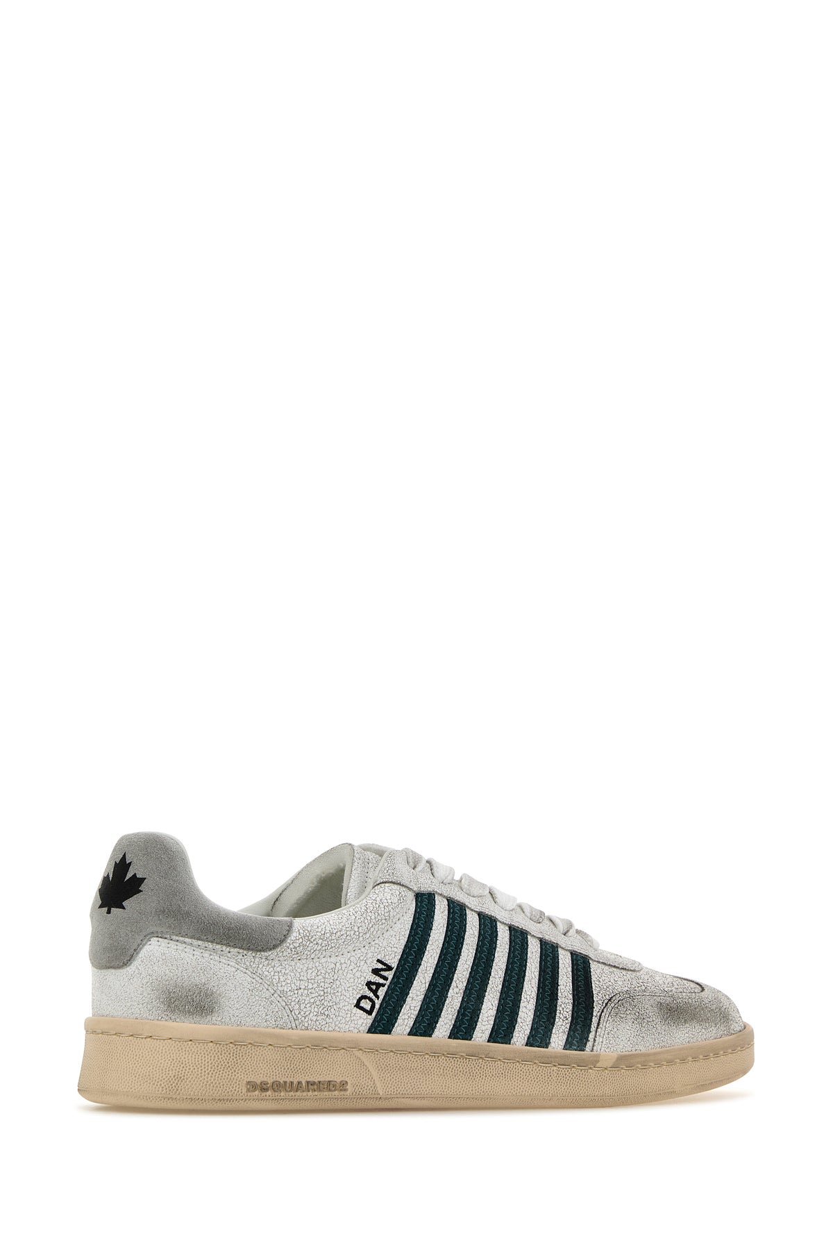 Sneakers realizzate in pelle di vitello effetto vintage caratterizzate da tallone in pelle scamosciata con logo stampato arricchite da bande in pelle scamosciata a contrasto sui lati.