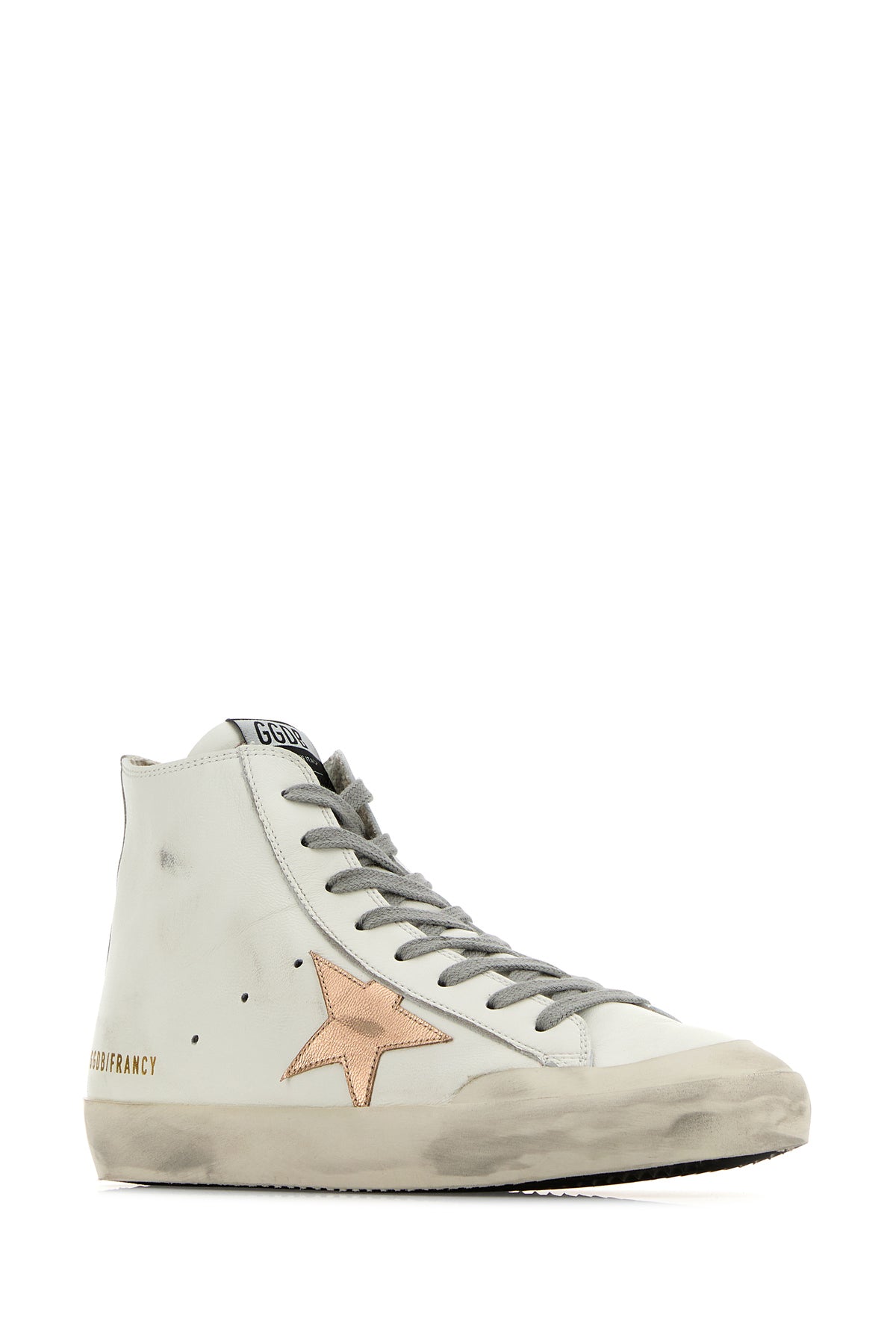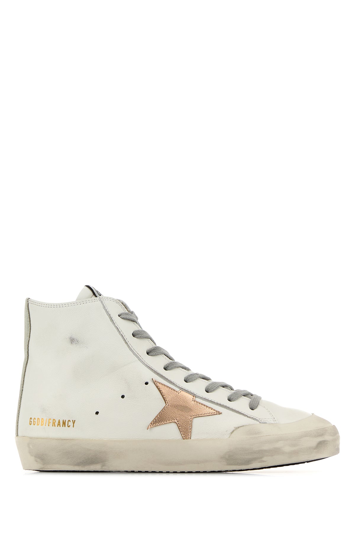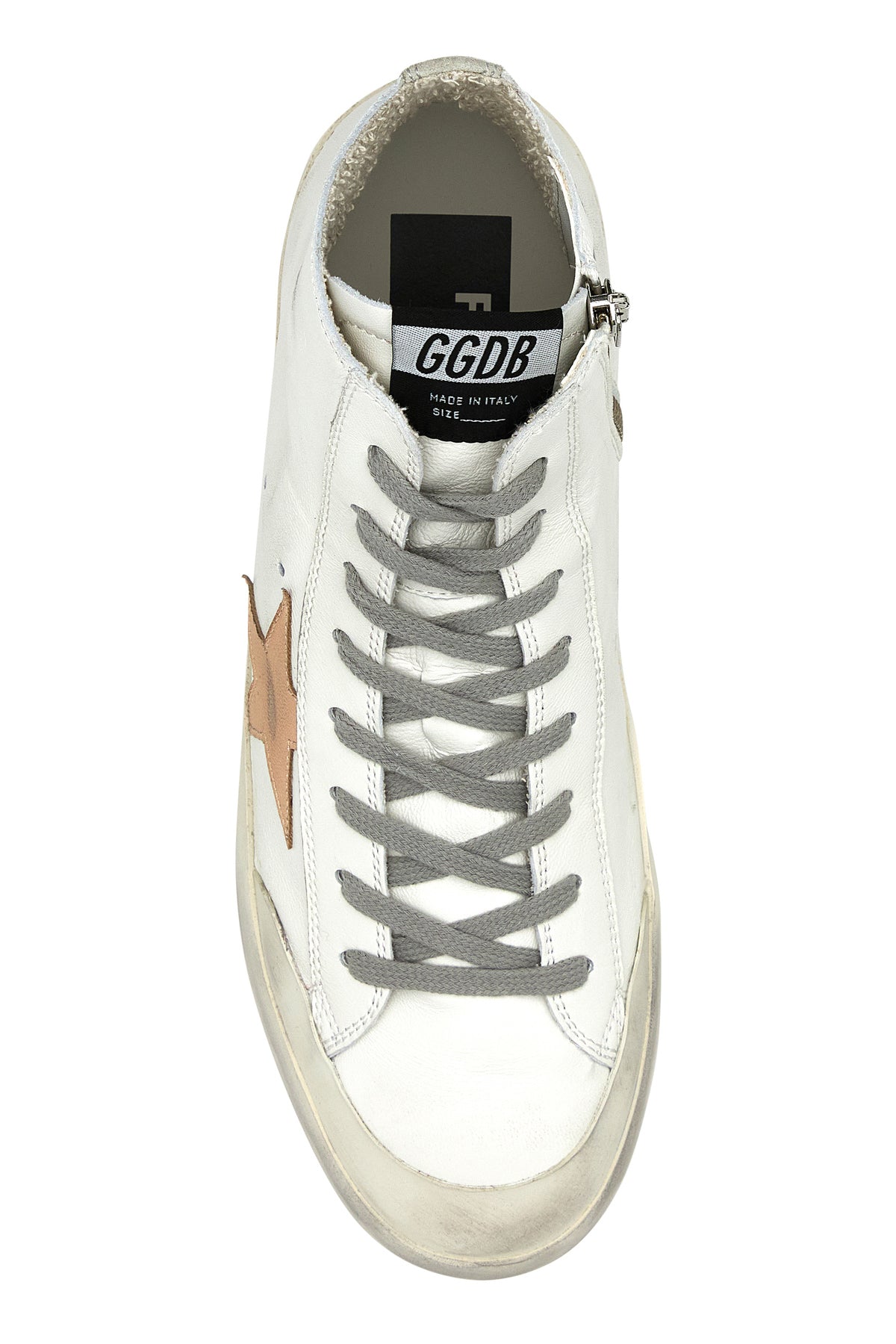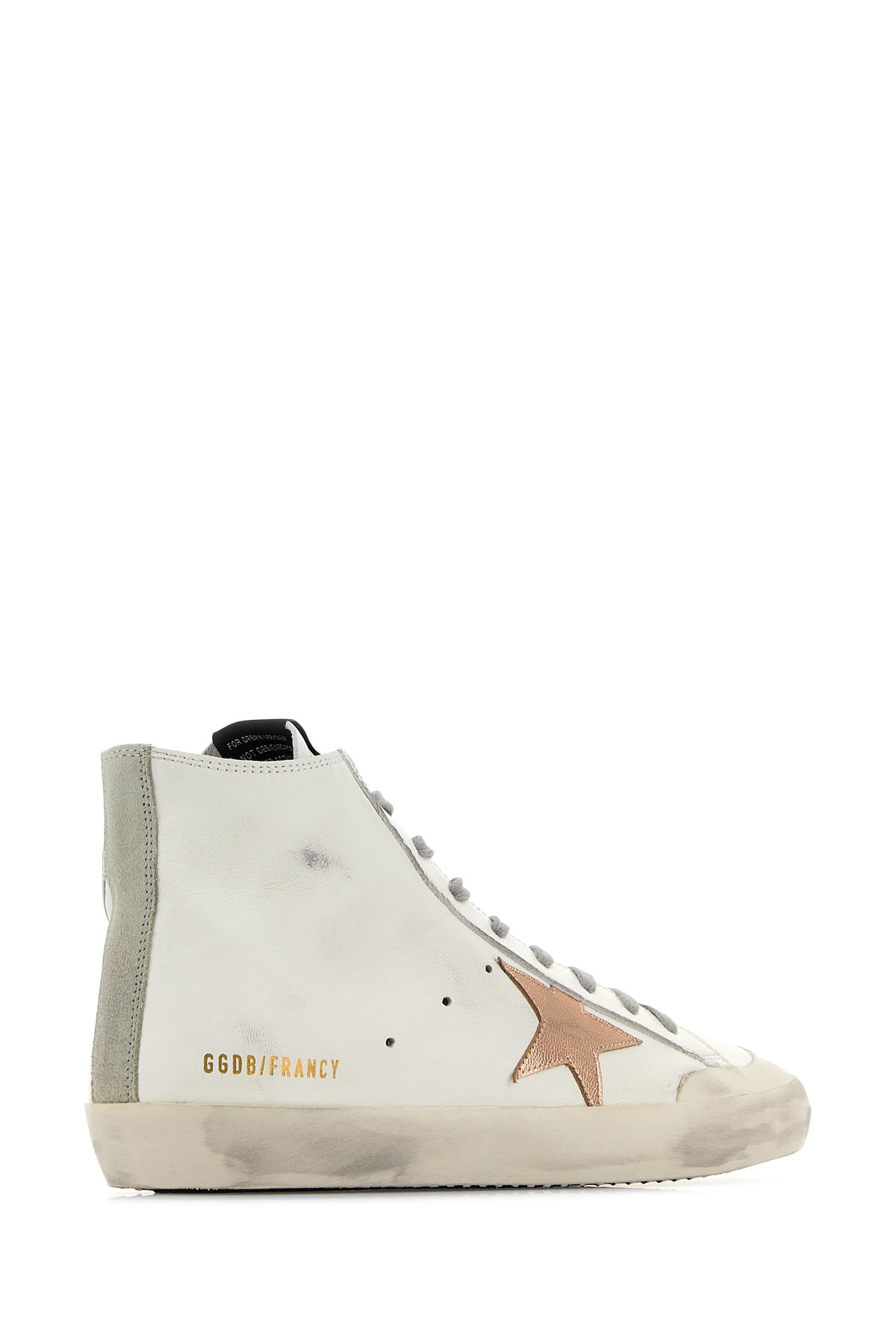 Sneakers alte realizzate in pelle liscia con sporcature intenzionali su tutta la superficie caratterizzate da logo stampato sul lato arricchite da iconica applicazione Star e applicazione logata sul lato.