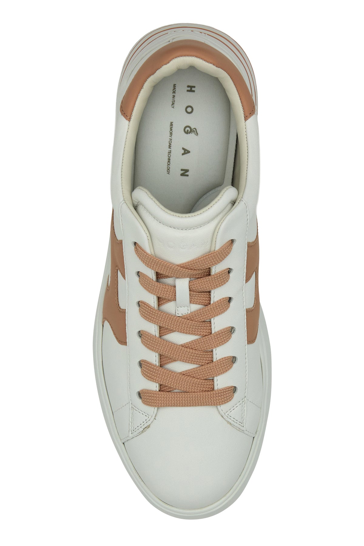 Sneakers realizzate in nappa caratterizzate da logo in rilievo sul retro arricchite da applicazione H in pelle a contrasto sui lati.