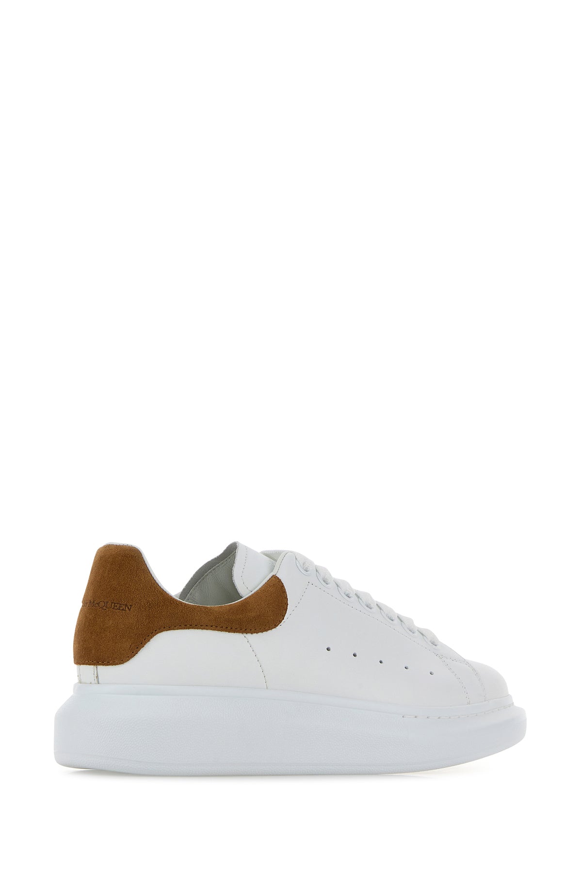 Sneakers in pelle bianca con tallone in pelle scamosciata cammello