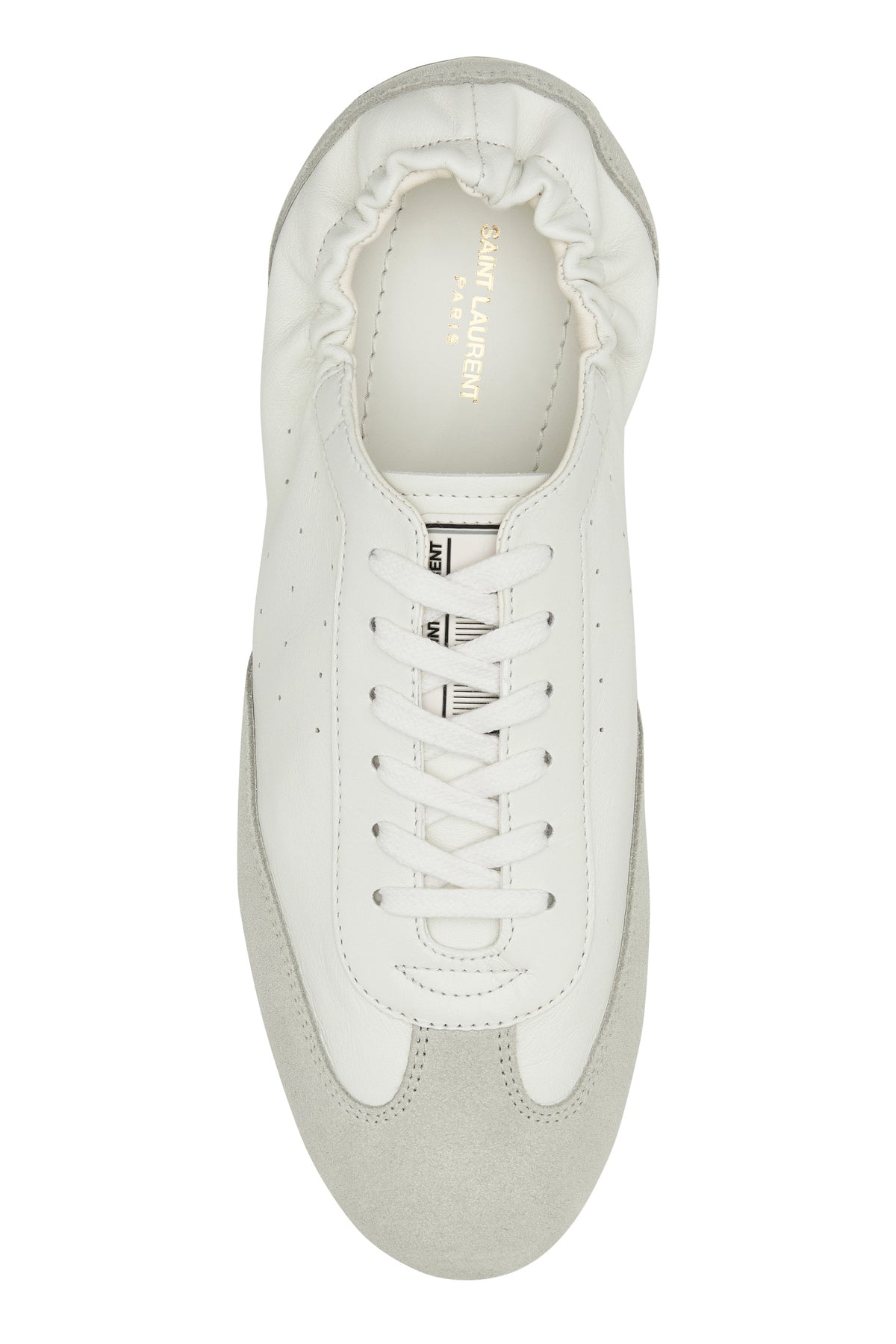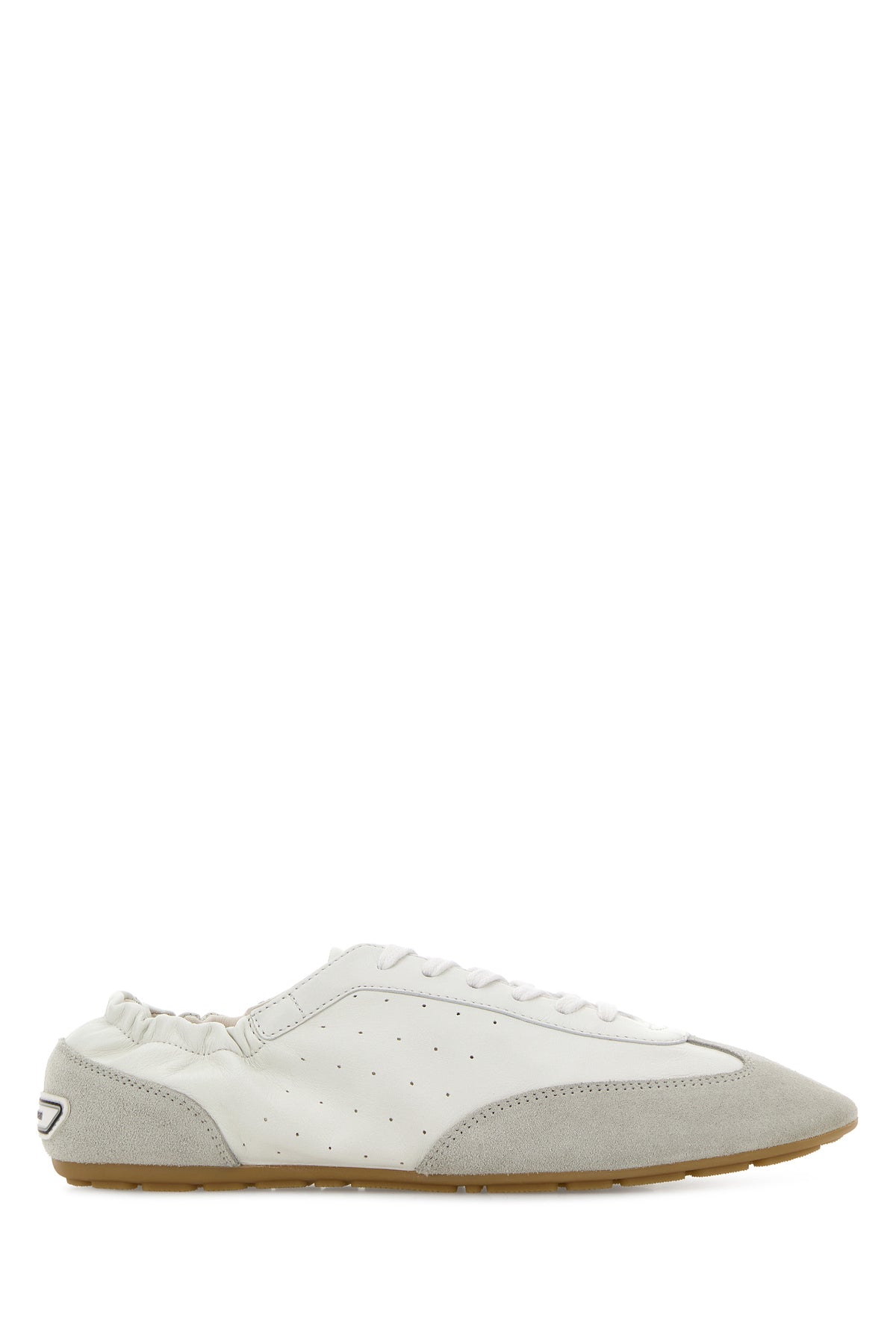 Sneakers realizzate in pelle di agnello con inserti in pelle scamosciata sulla punta e sul tallone arricchite da etichetta logata sul retro.