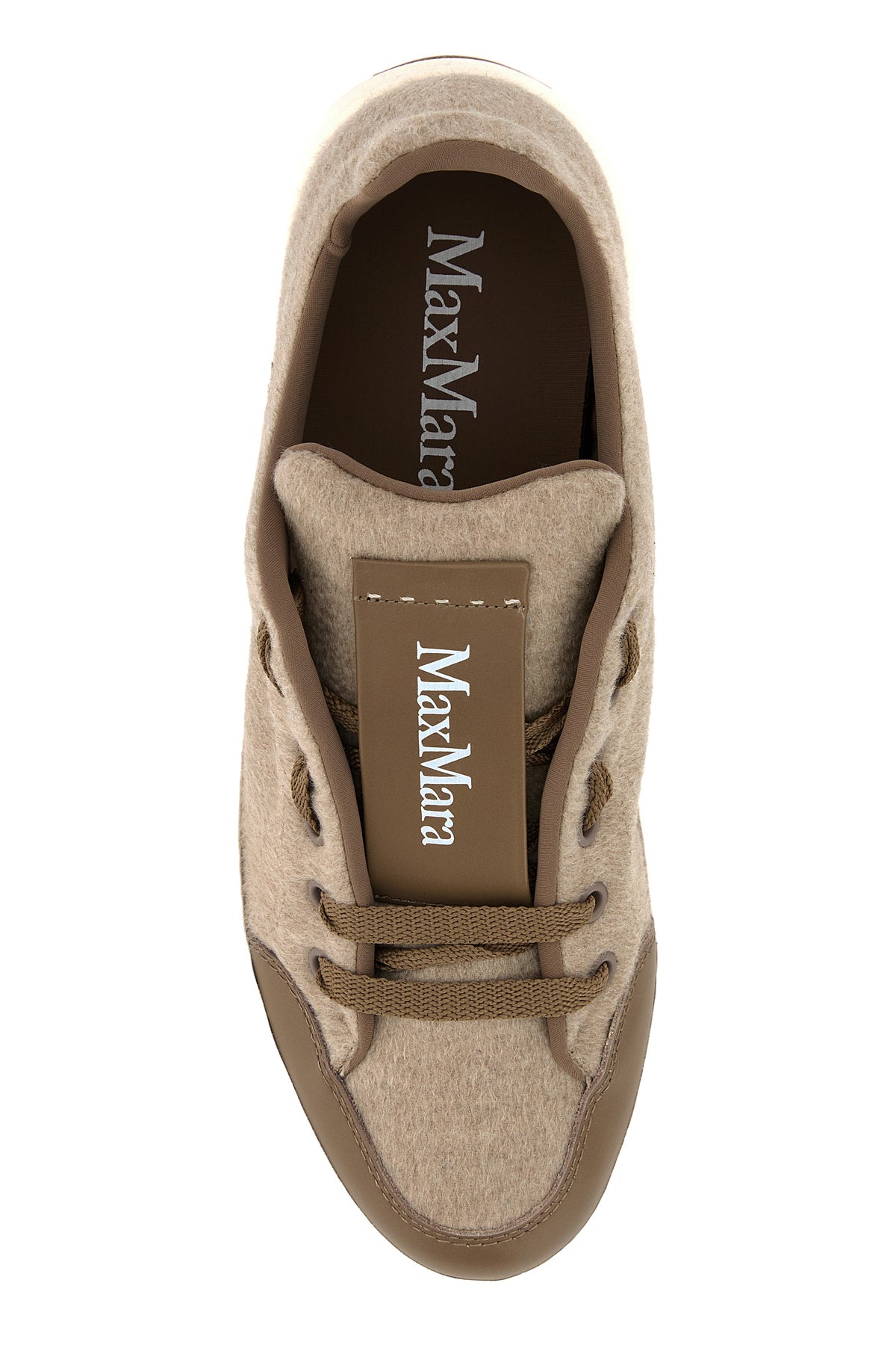 Sneakers realizzate in cashmere e pelle di vitello arricchite da etichetta logata sul tallone.