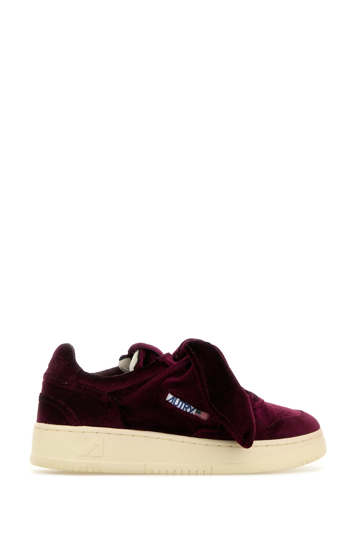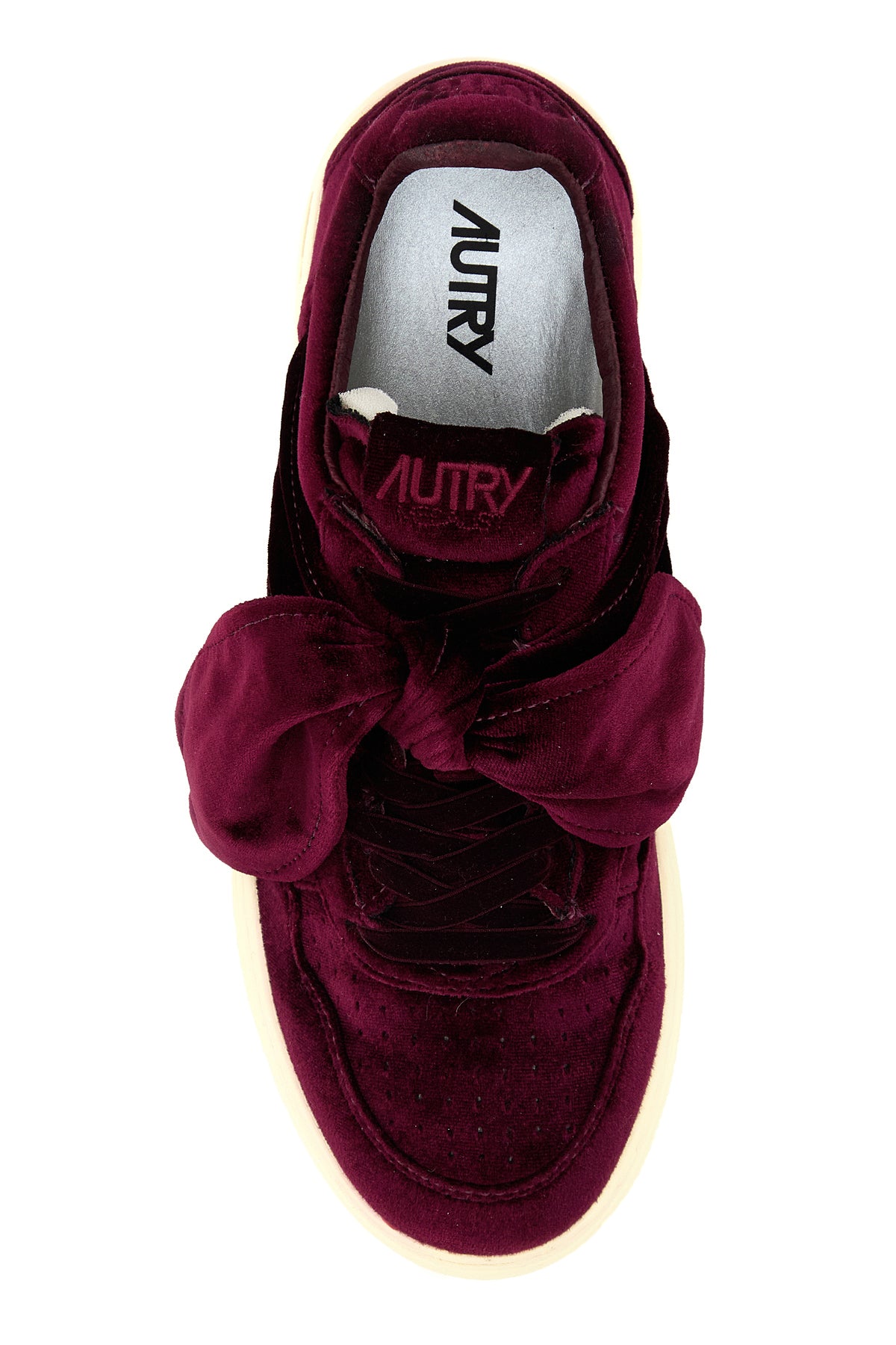 Sneakers realizzate in velluto caratterizzate da logo impresso sul tallone arricchite da etichetta logata sul lato e fiocco decorative sul collo del piede.
