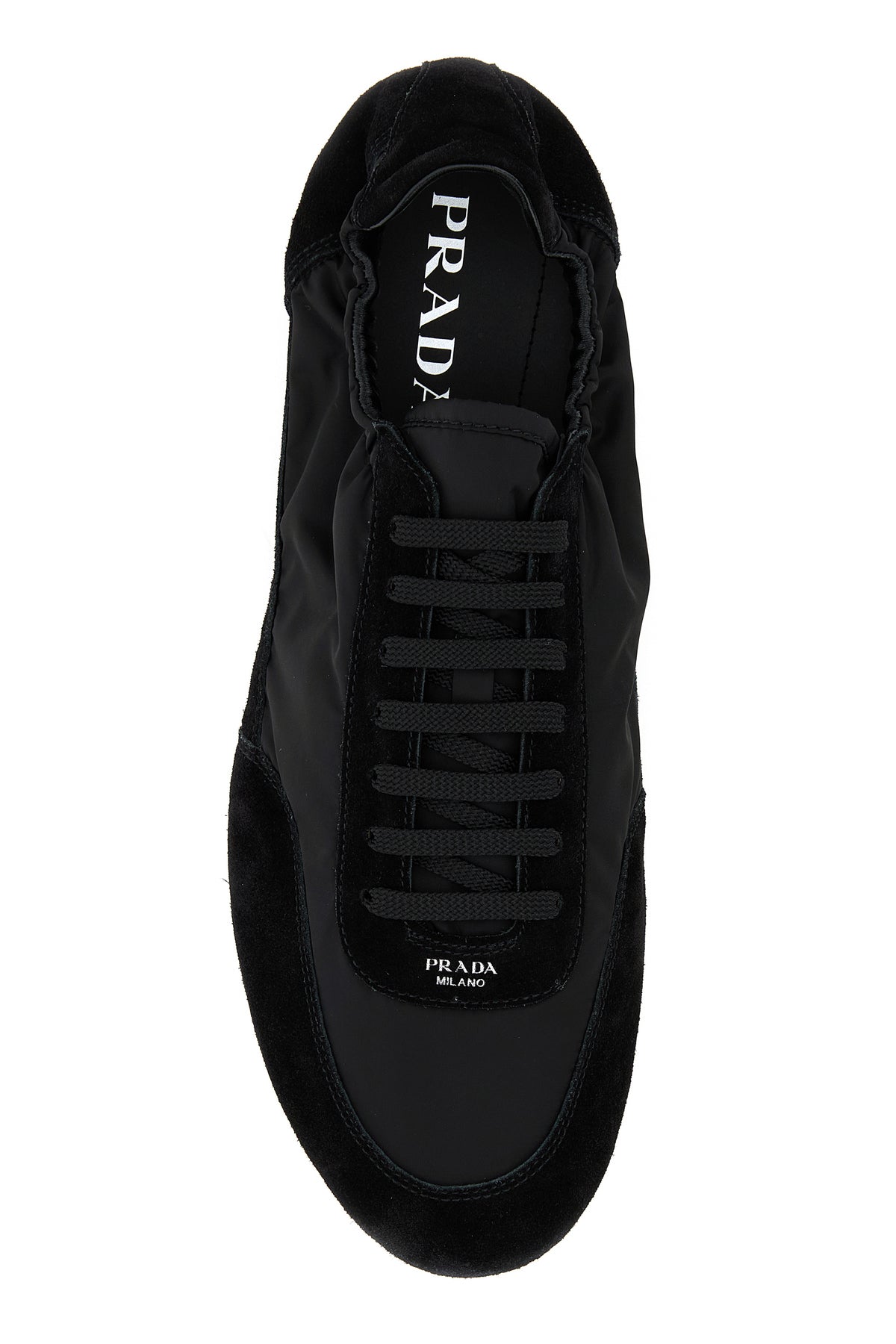Sneakers nere in nylon e pelle scamosciata