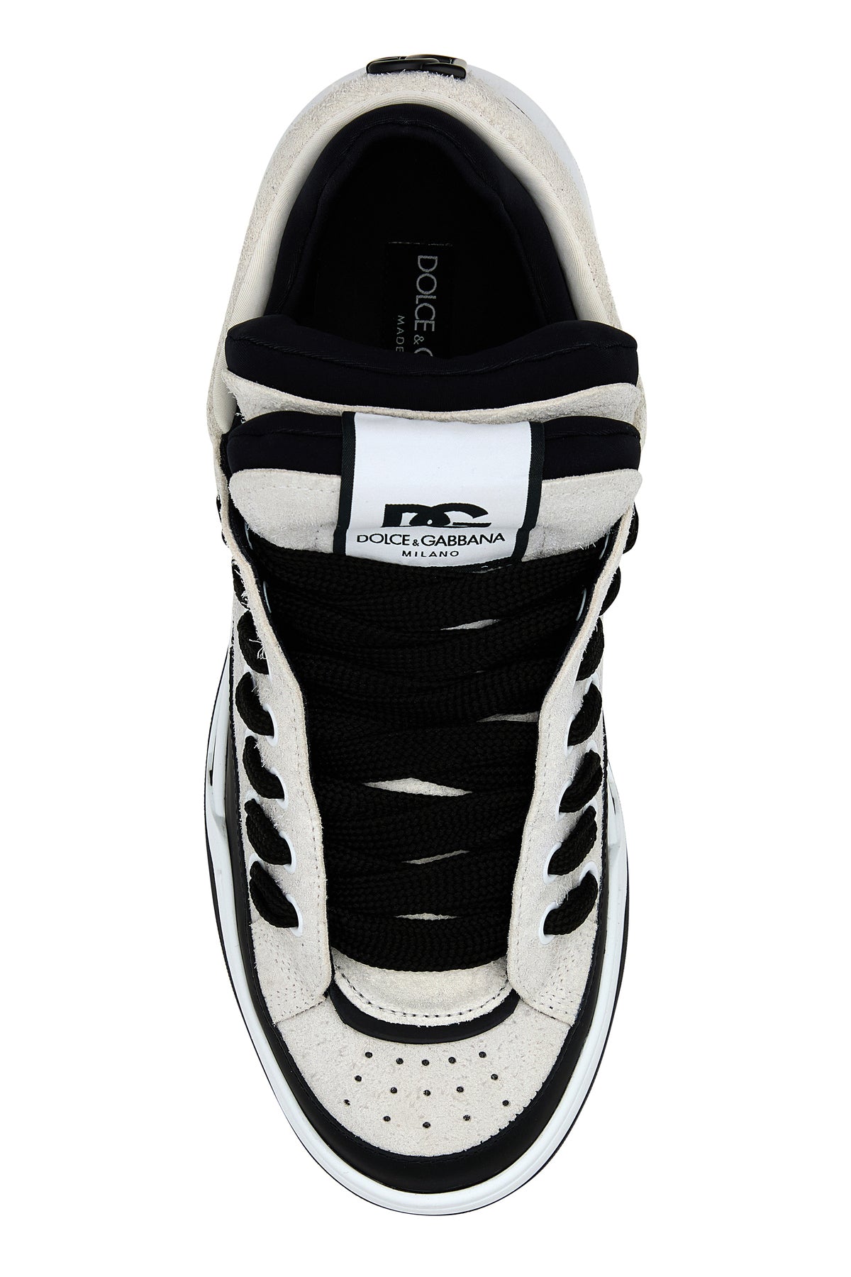 Sneakers realizzate in pelle scamosciata e gomma caratterizzate da logo in rilievo sul retro arricchite da dettaglio metallico DG sul tallone.