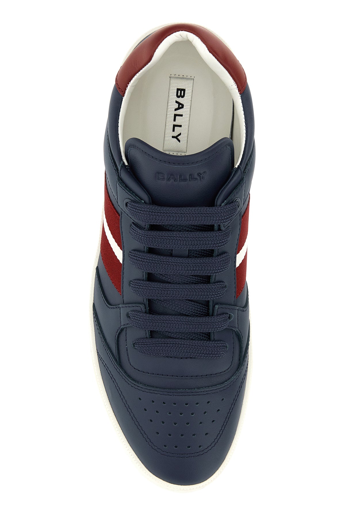Sneakers realizzate in pelle di vitello liscia con tallone a contrasto caratterizzate da logo stampato sul lato e logo in rilievo sul retro arricchite da applicazione Bally Stripe a contrasto sui lati.