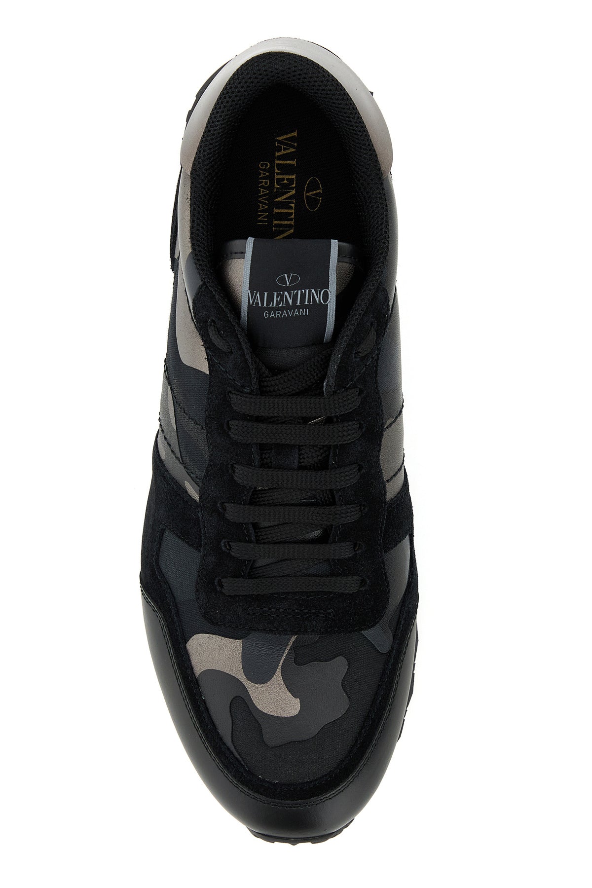 Sneakers realizzate in tessuto e pelle liscia con inserti in pelle scamosciata caratterizzate da ricamo camouflage sulla parte frontale e sui lati arricchite da borchie in gomma sul retro.