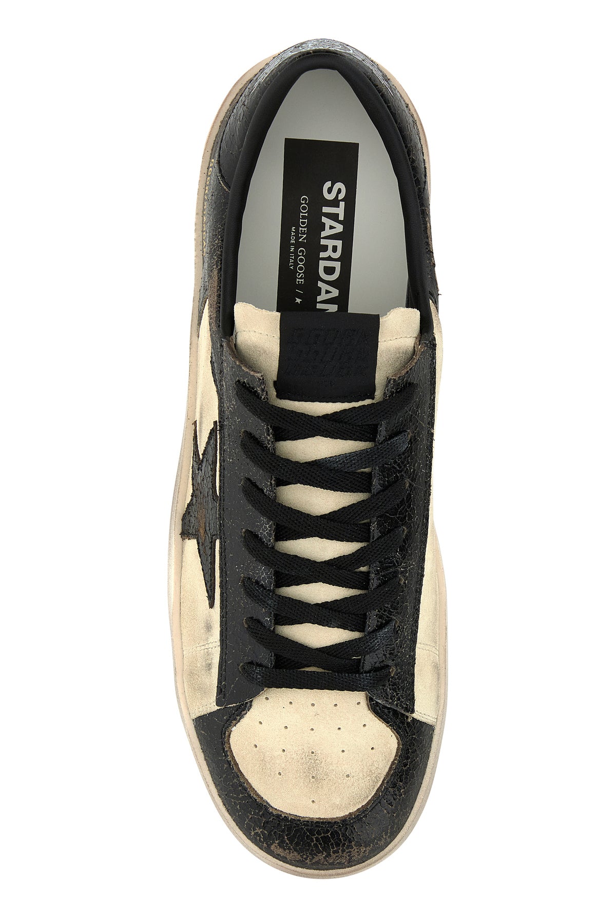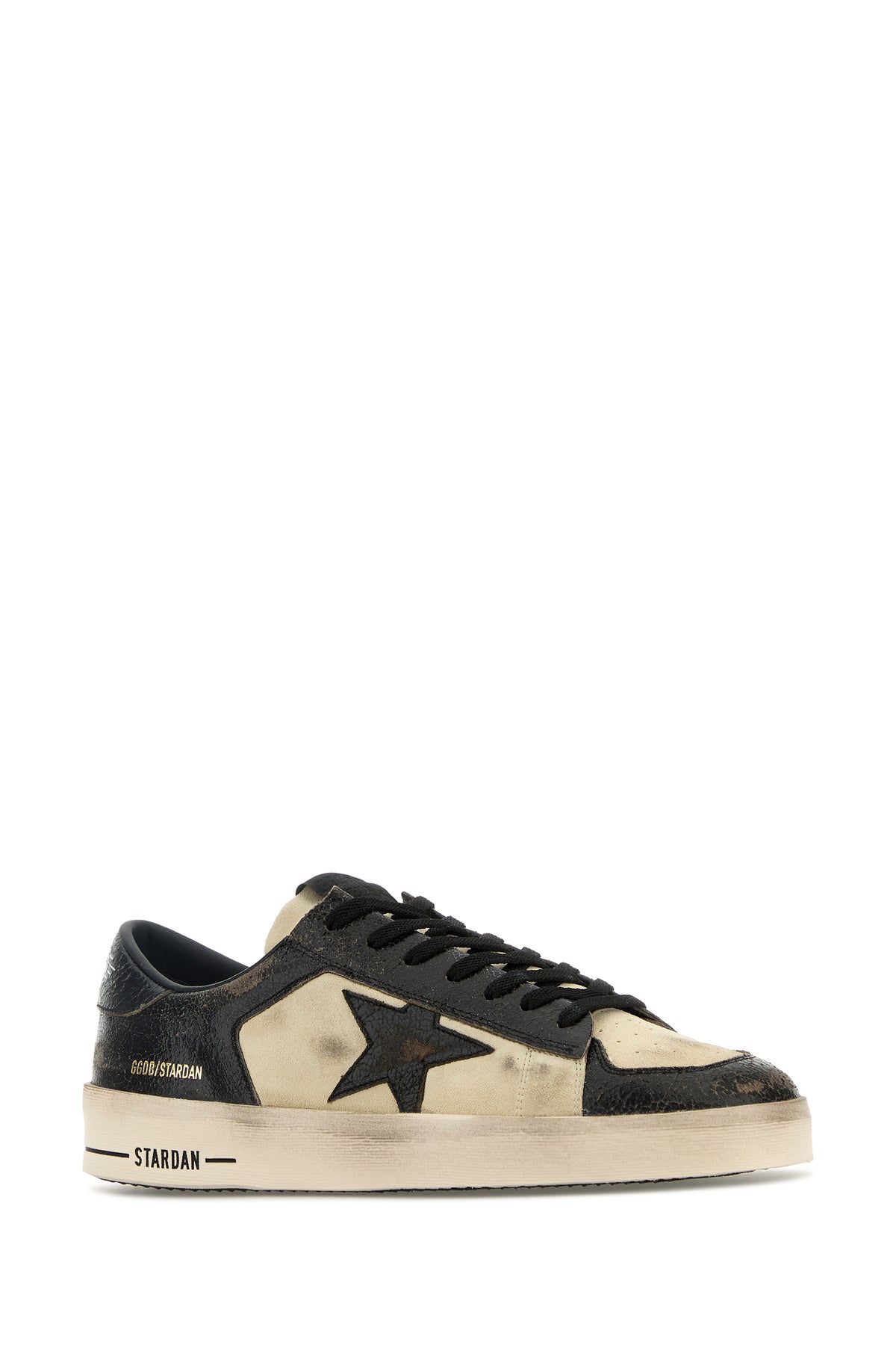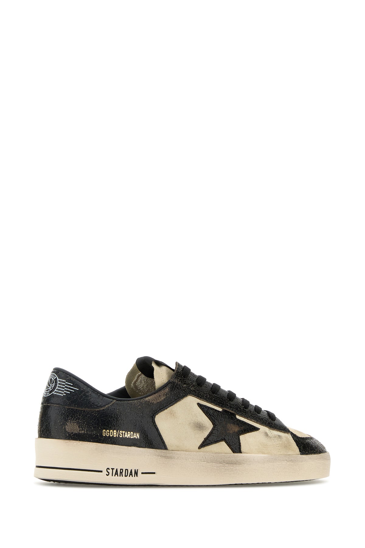 Sneakers realizzate in pelle scamosciata e pelle crackle con sporcature intenzionali su tutta la superficie caratterizzate da logo stampato sul lato e sul tallone arricchite da iconica applicazione Star sul lato.