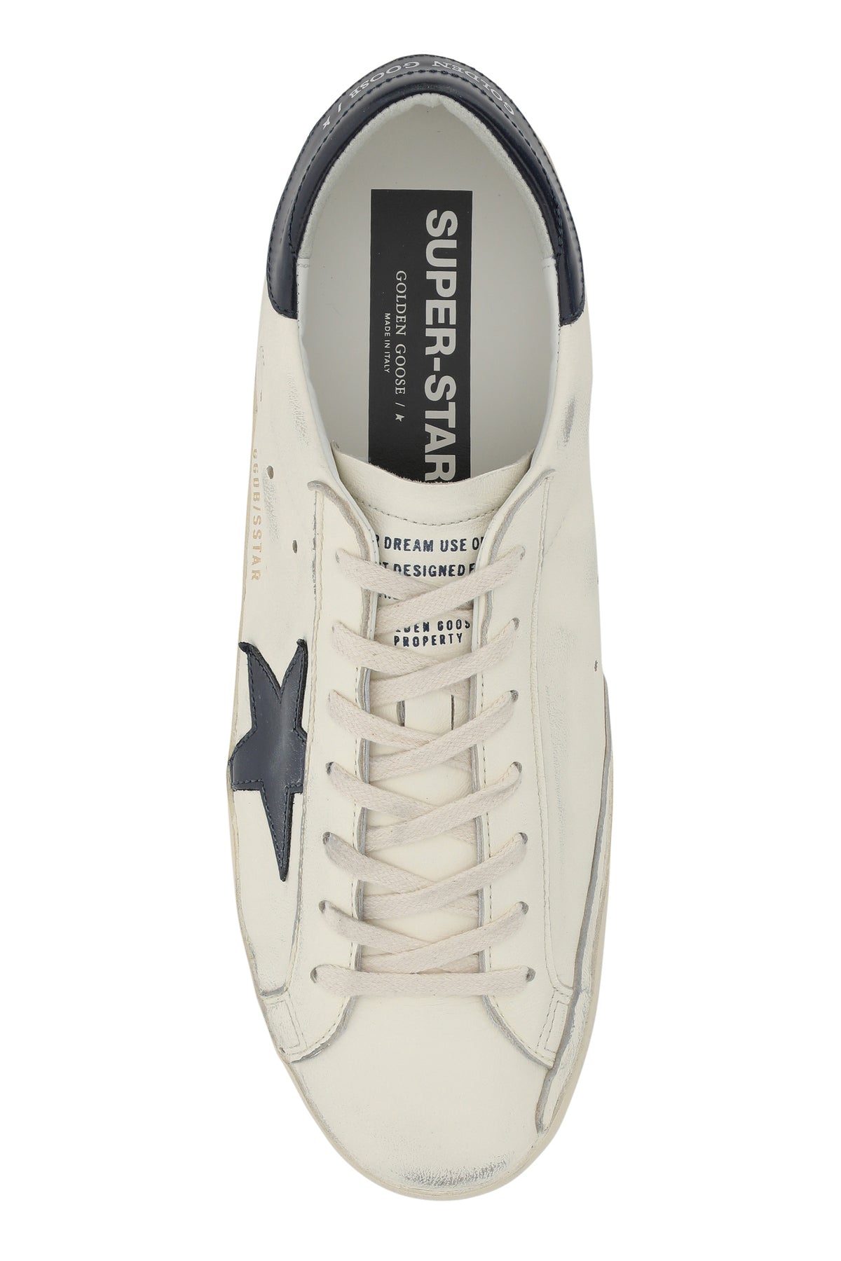 Sneakers realizzate in pelle liscia caratterizzate da sporcature intenzionali su tutta la superficie e logo stampato sul tallone arricchite da iconica applicazione Star sul lato.