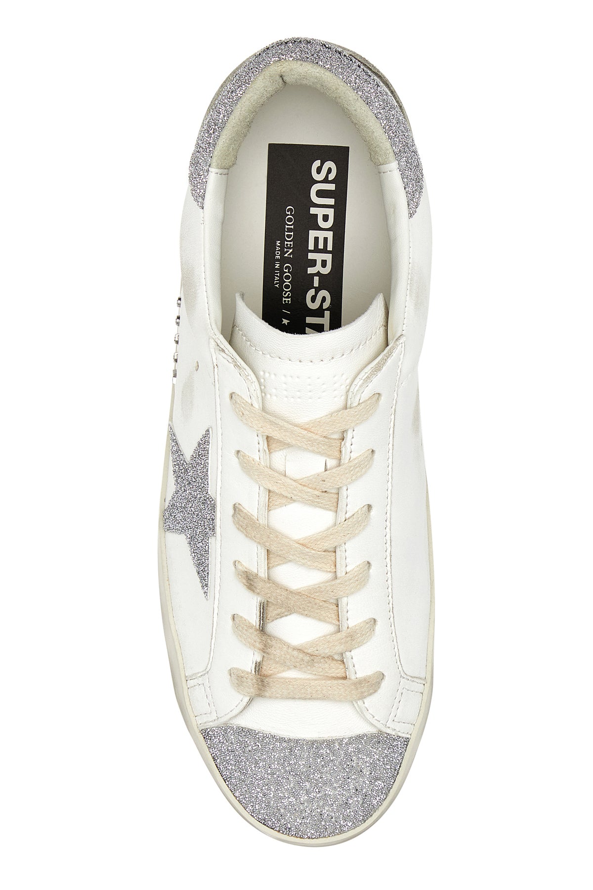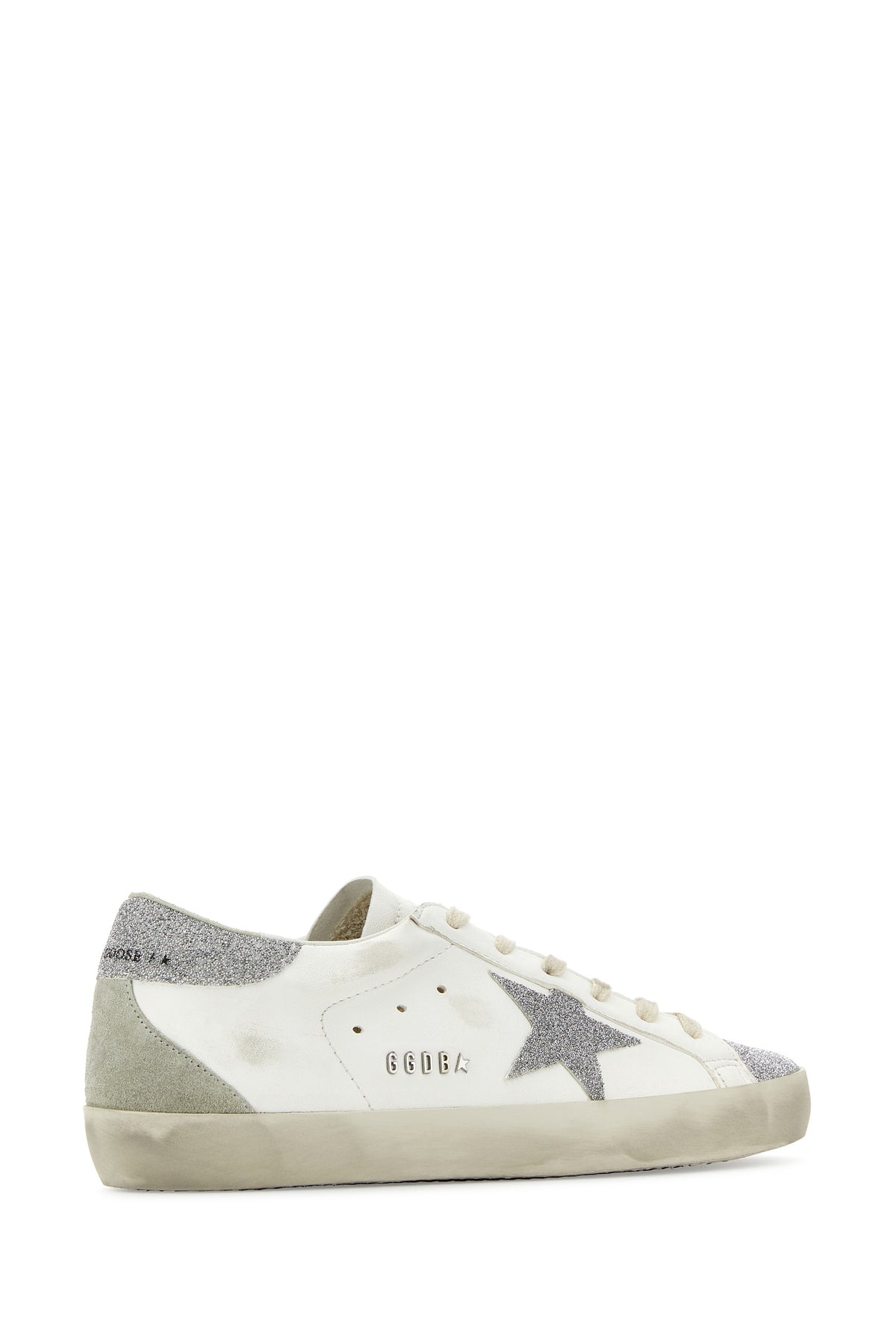 Sneakers realizzate in pelle liscia con inserti in pelle scamosciata caratterizzate da sporcature intenzionali arricchite da iconica applicazione Star sul lato e tallone con paillettes e logo stampato.