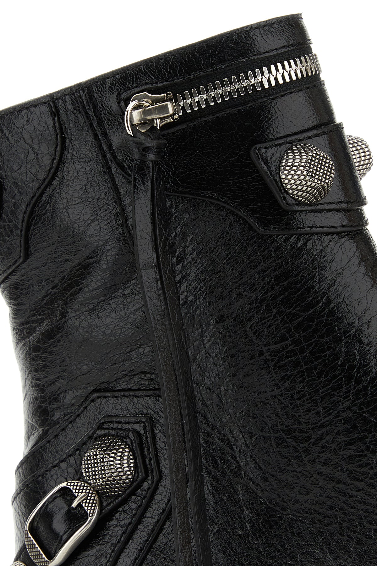 Stivaletti realizzati in nappa di agnello Arena arricchiti da borchie e fibbie metalliche su tutta la superficie.