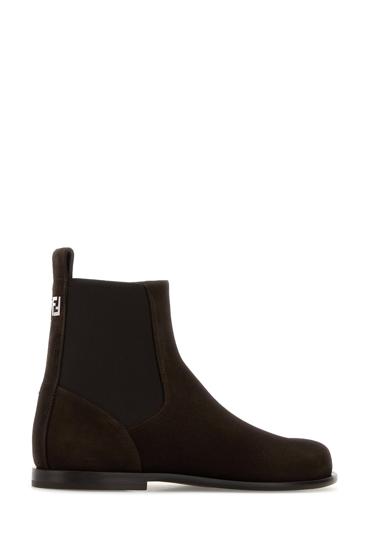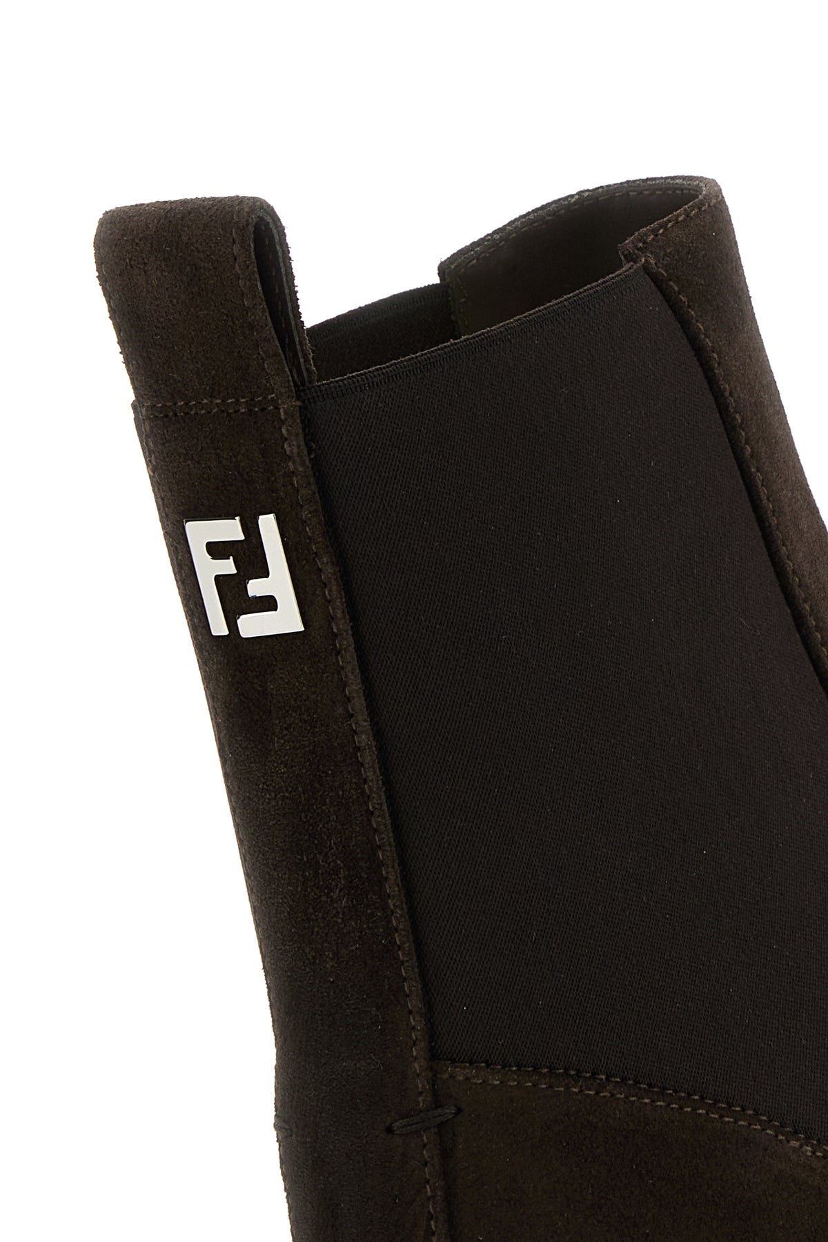 Stivaletti realizzati in pelle di vitello scamosciata arricchiti da dettaglio metallico FF sul retro.