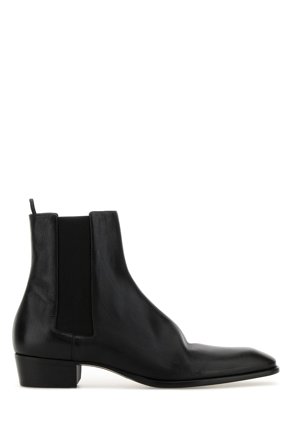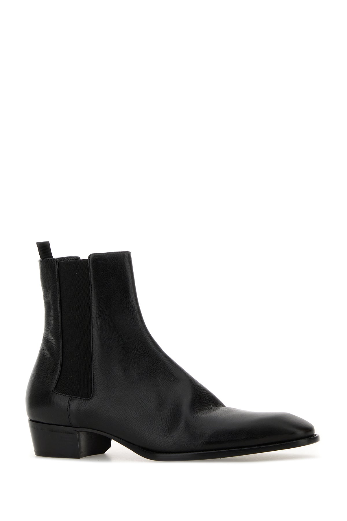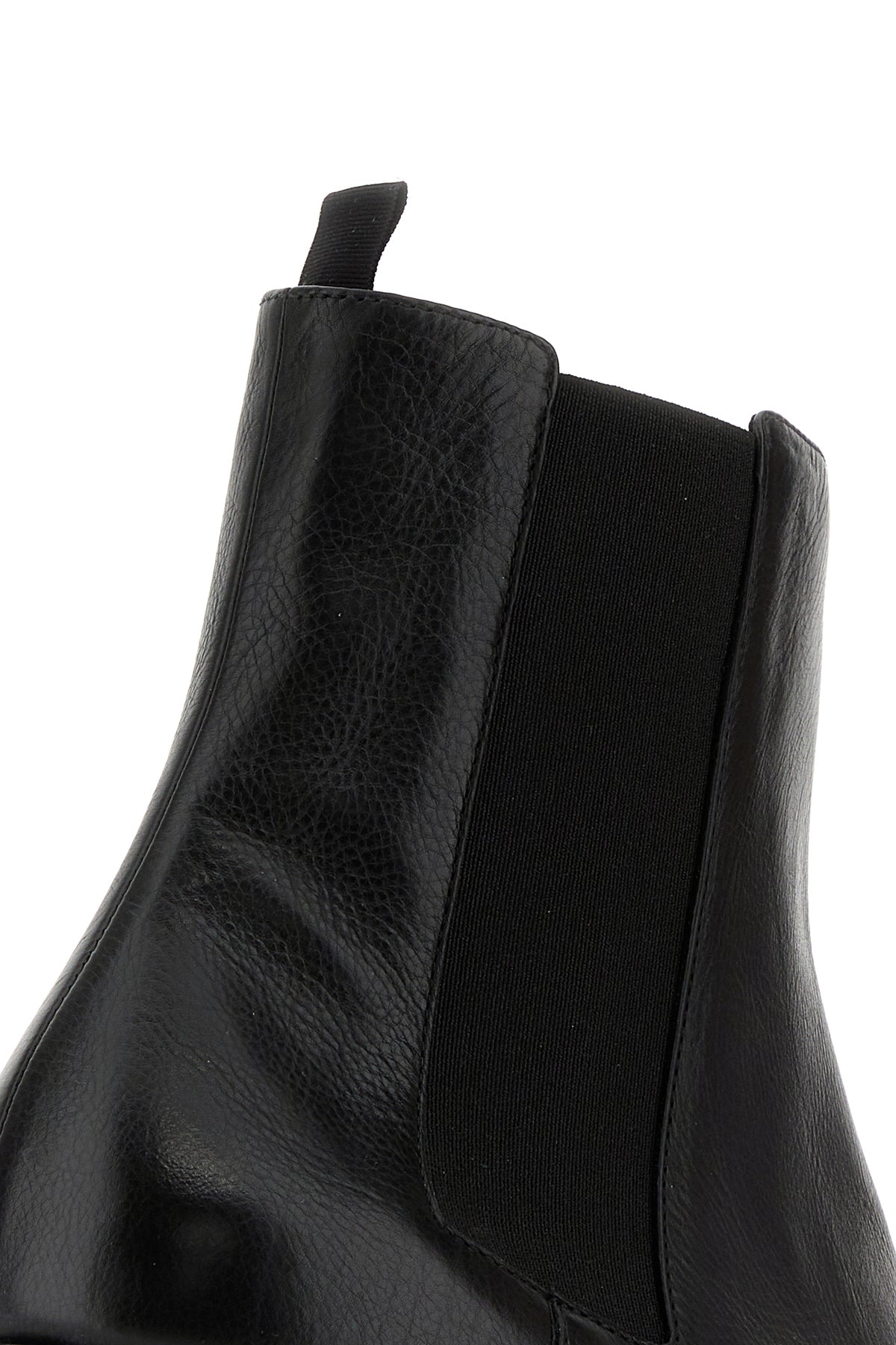 Stivaletti realizzati in pelle di vitello martellata caratterizzati da inserti elastici laterali.