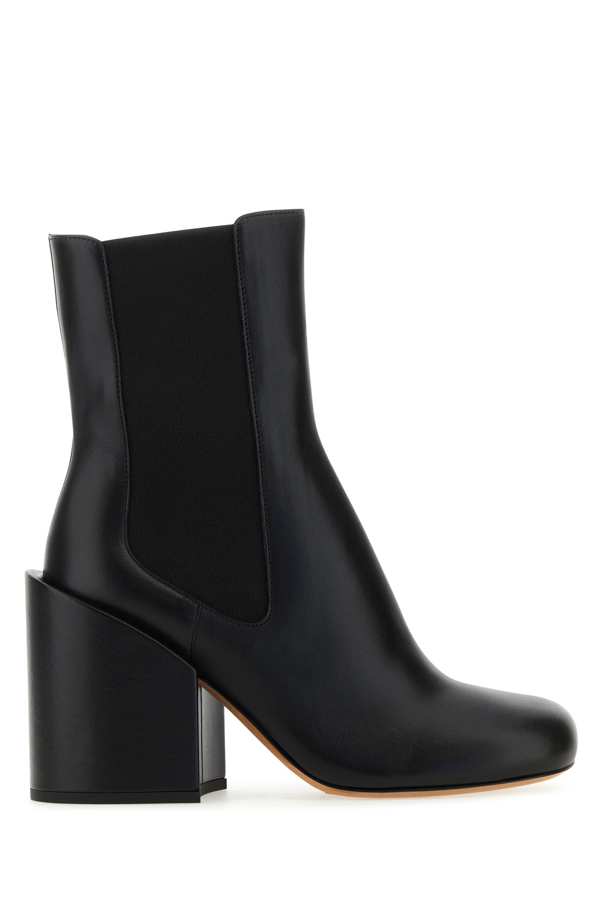 Stivaletti realizzati in pelle liscia dal finish lucido con inserti in tessuto elastico sui lati.