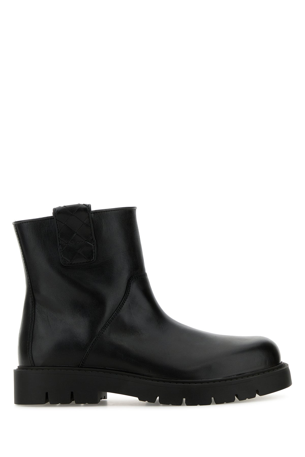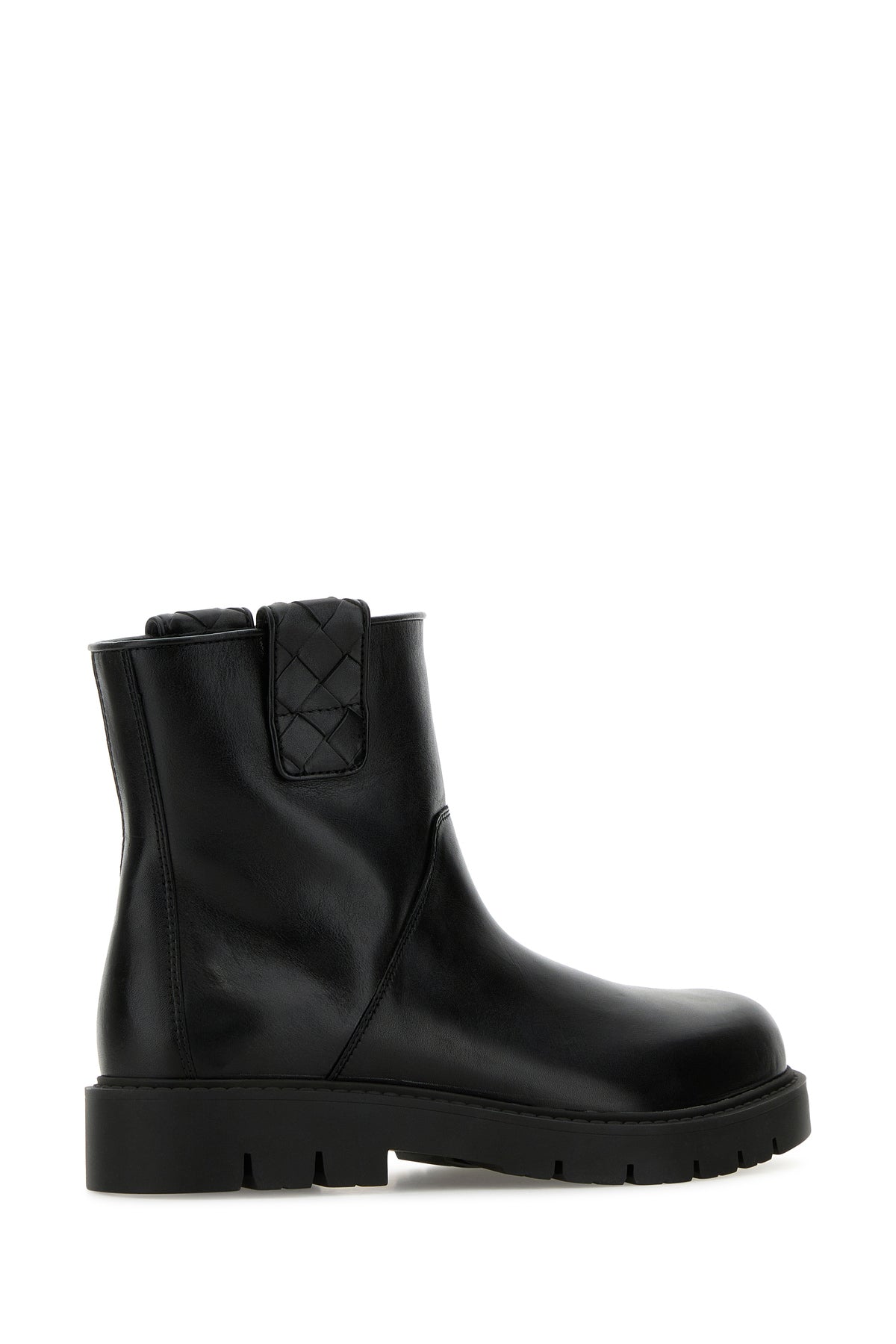 Stivaletti realizzati in pelle di vitello arricchiti da tiranti con iconico motivo Intrecciato sui lati.