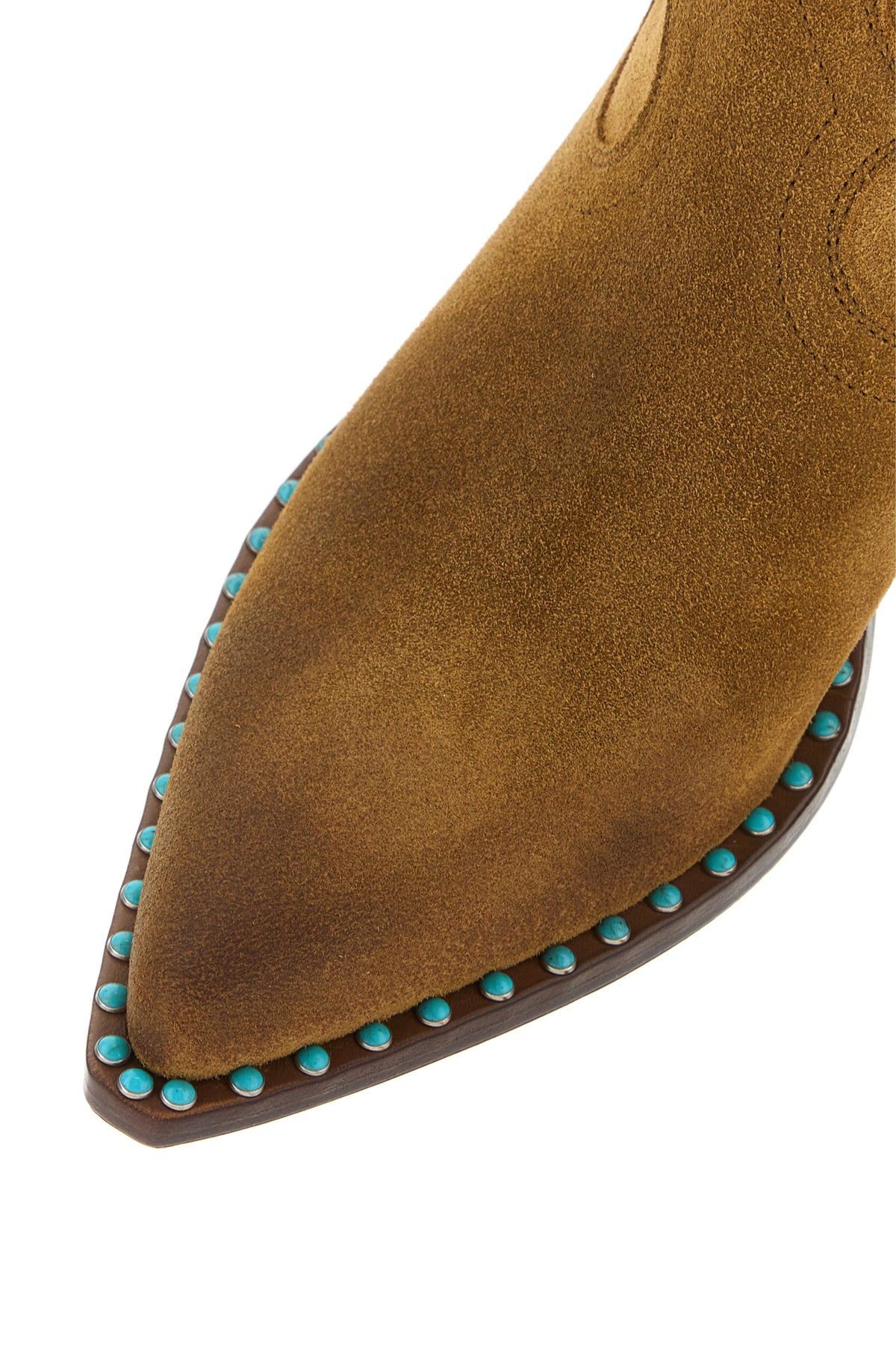 Stivaletti realizzati in pelle scamosciata arricchiti da perline sulla punta.