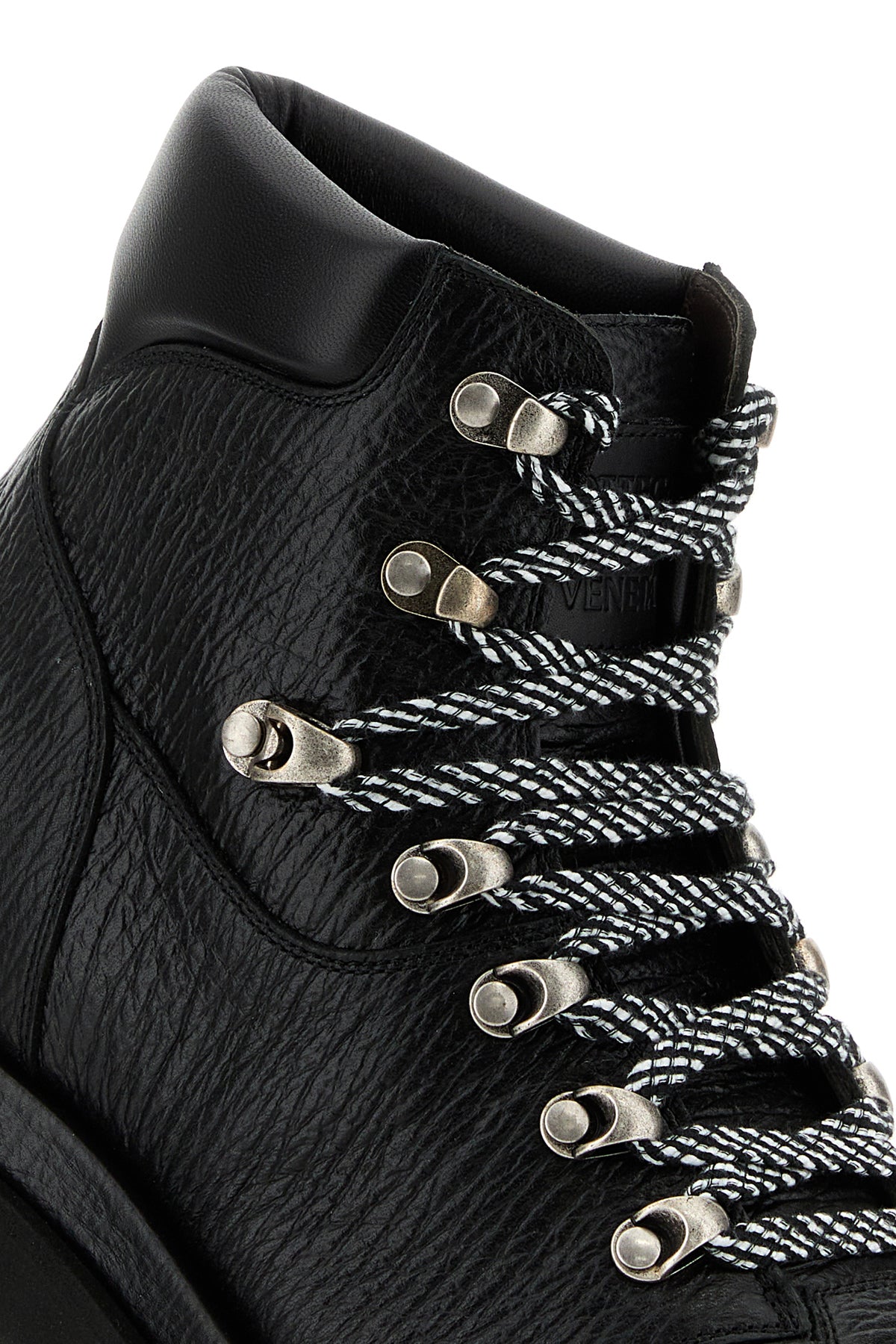 Stivali realizzati in pelle martellata arricchiti da etichetta logata sulla linguetta.