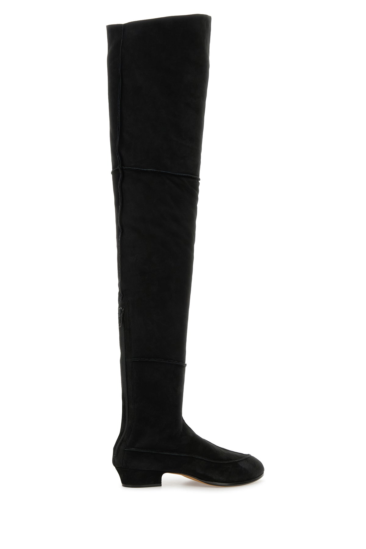 Stivali sopra al ginocchio realizzati in pelle scamosciata.