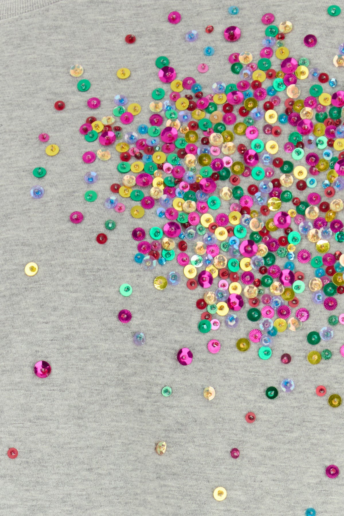 T-shirt a maniche lunghe realizzata in puro cotone arricchita da paillettes sulla parte frontale e sul retro.