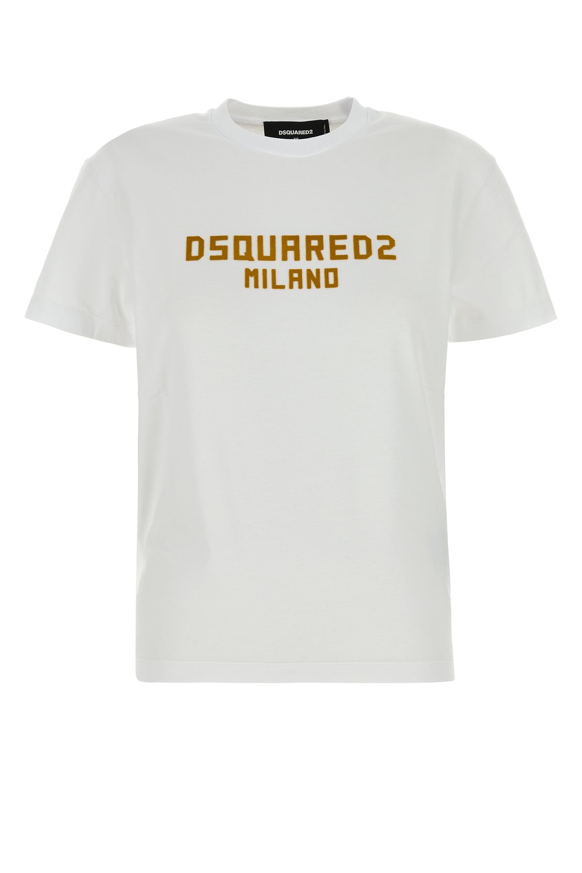 T-shirt realizzata in puro cotone caratterizzata da stampa logata floccata a contrasto sulla parte frontale.