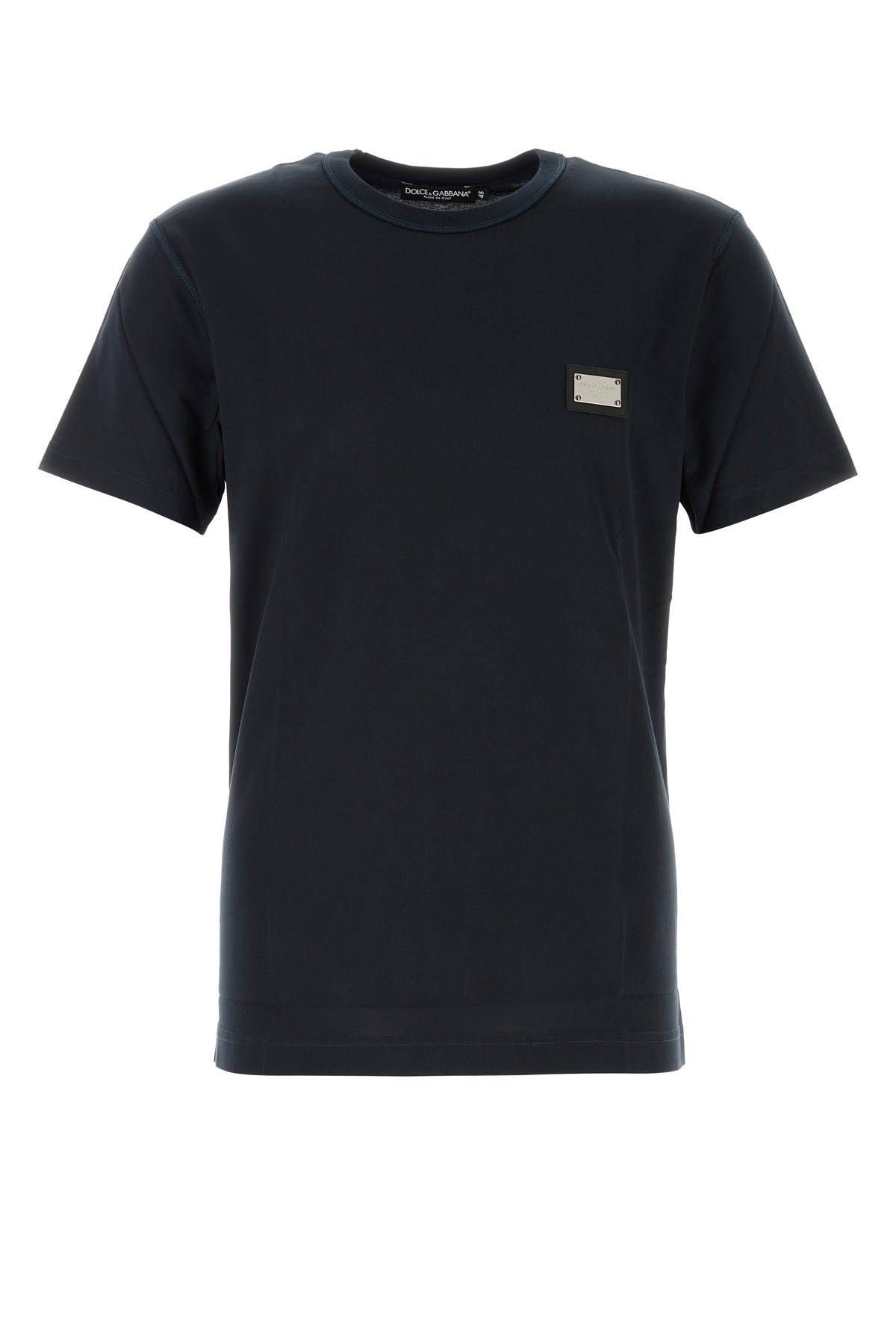 T-shirt realizzata in puro cotone arricchita da targhetta metallica logata sul petto.
