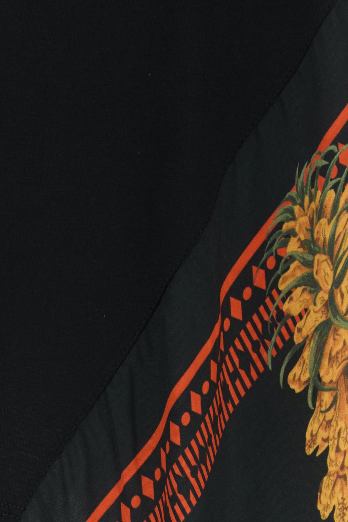 T-shirt realizzata in puro cotone con inserto in viscosa stampata sul lato caratterizzata da logo ricamato sul retro.