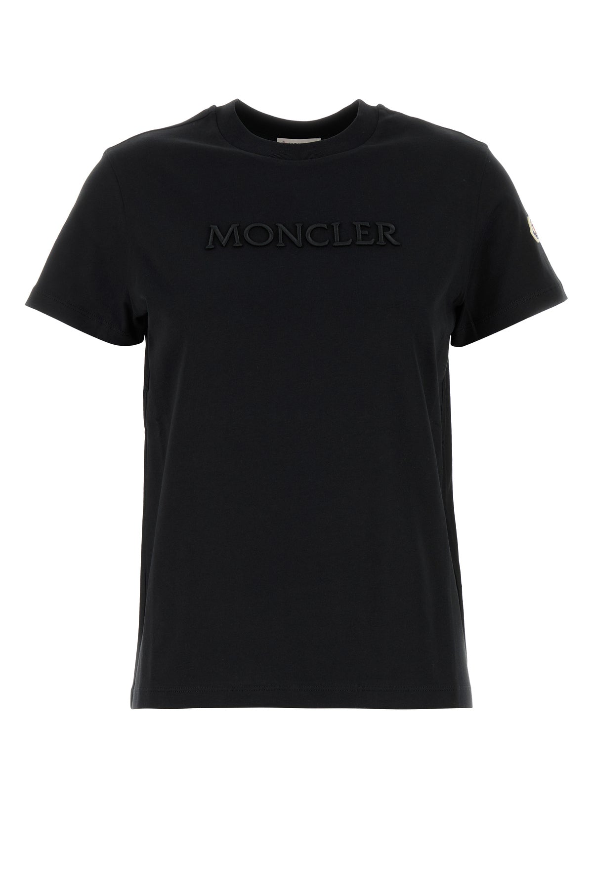 T-shirt realizzata in puro cotone caratterizzata da logo ricamato tonale sulla parte frontale arricchita da applicazione logata sulla manica.