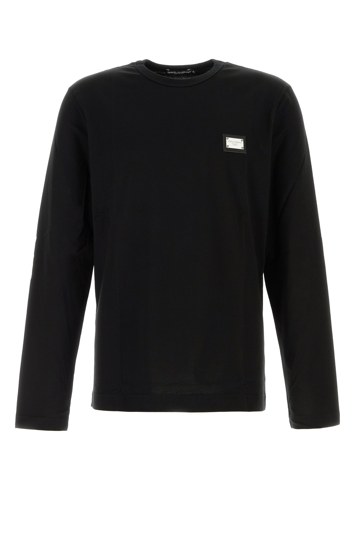 T-shirt a maniche lunghe realizzata in puro cotone arricchita da targhetta metallica logata sul petto.