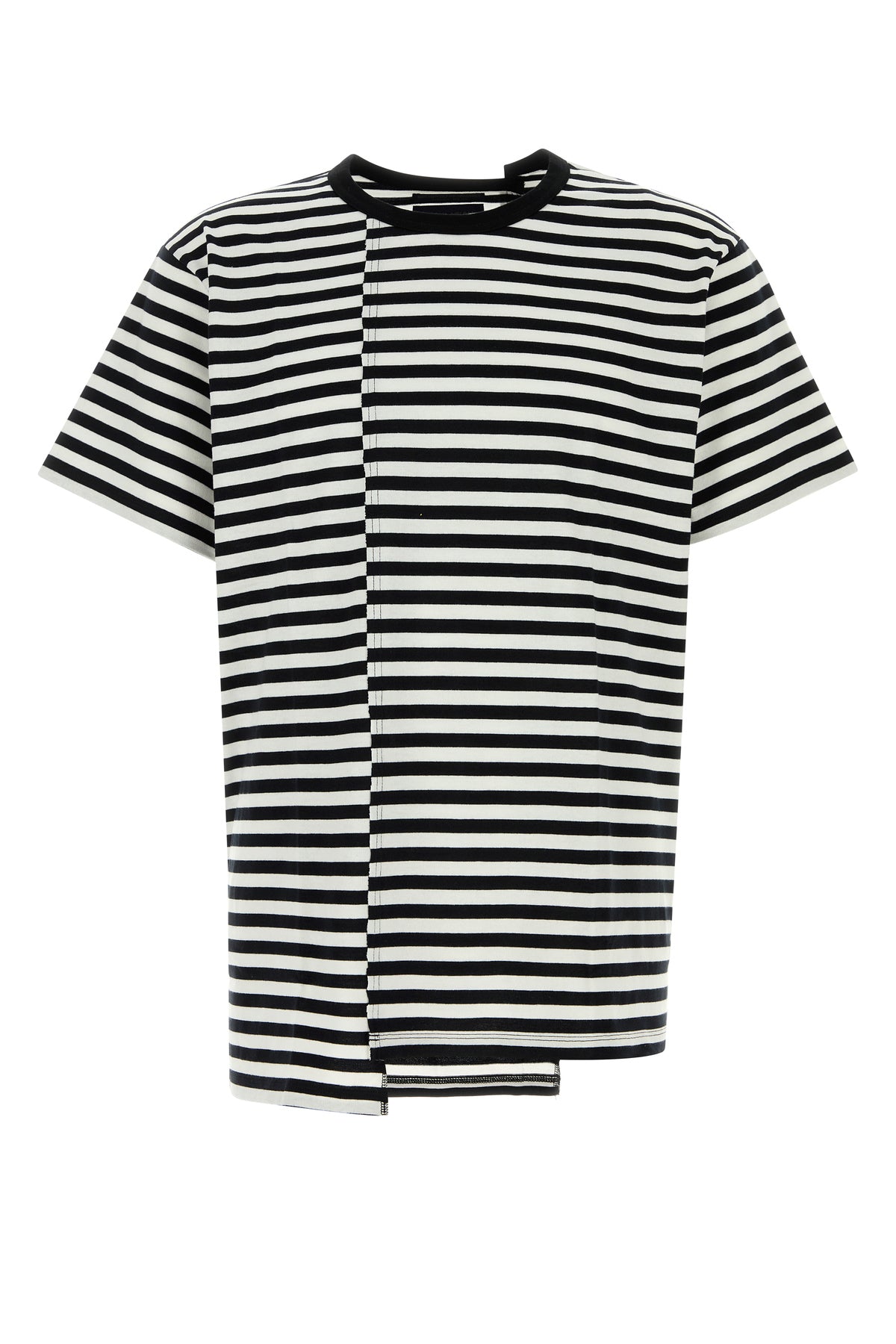 T-shirt realizzata in puro cotone caratterizzata da ricamo a righe su tutta la superficie.