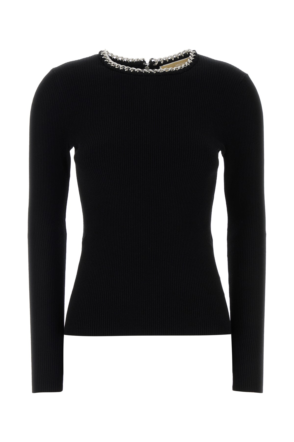 T-shirt a maniche lunghe realizzata in misto viscosa arricchita da catena metallica sul girocollo.