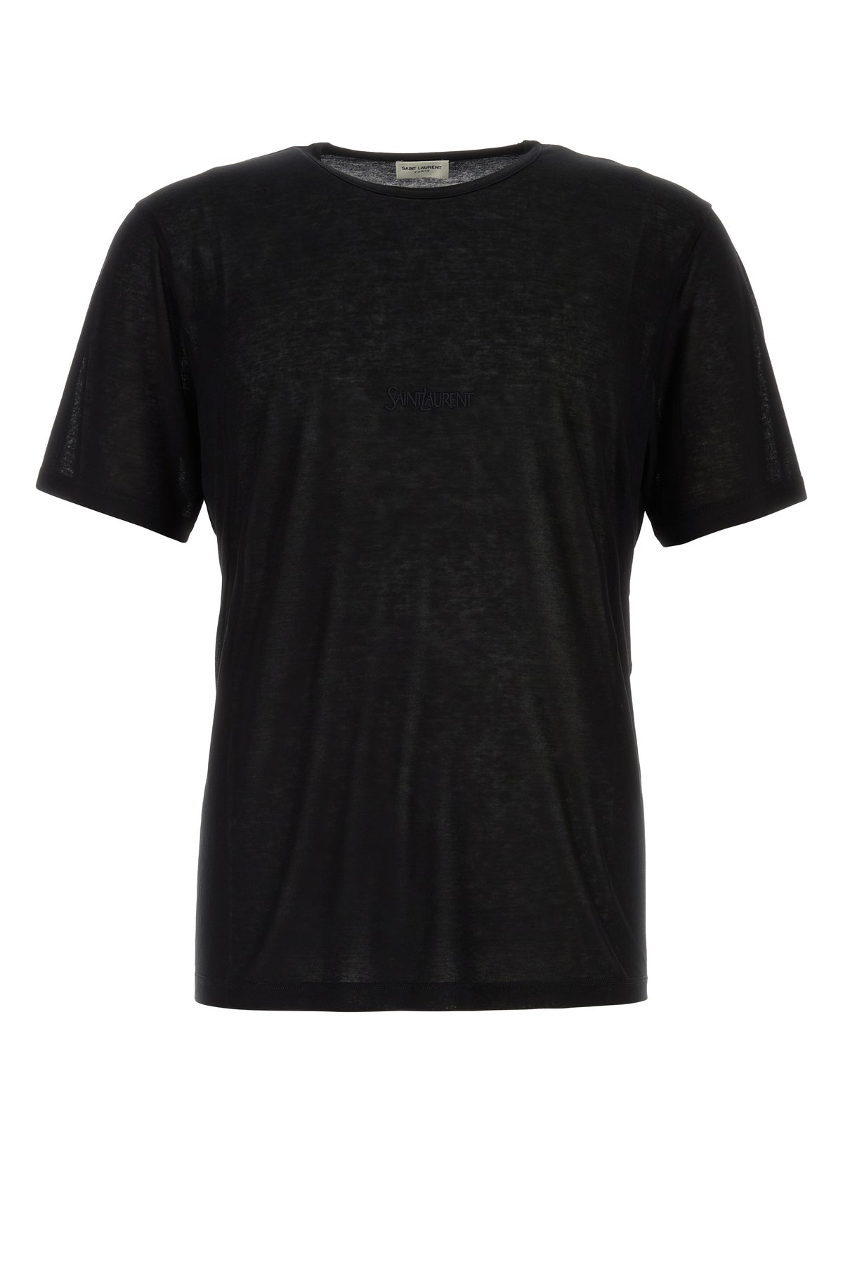 T-shirt semitrasparente realizzata in viscosa caratterizzata da logo ricamato tonale sulla parte frontale.
