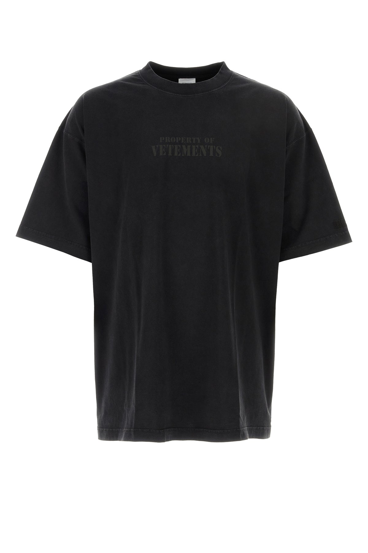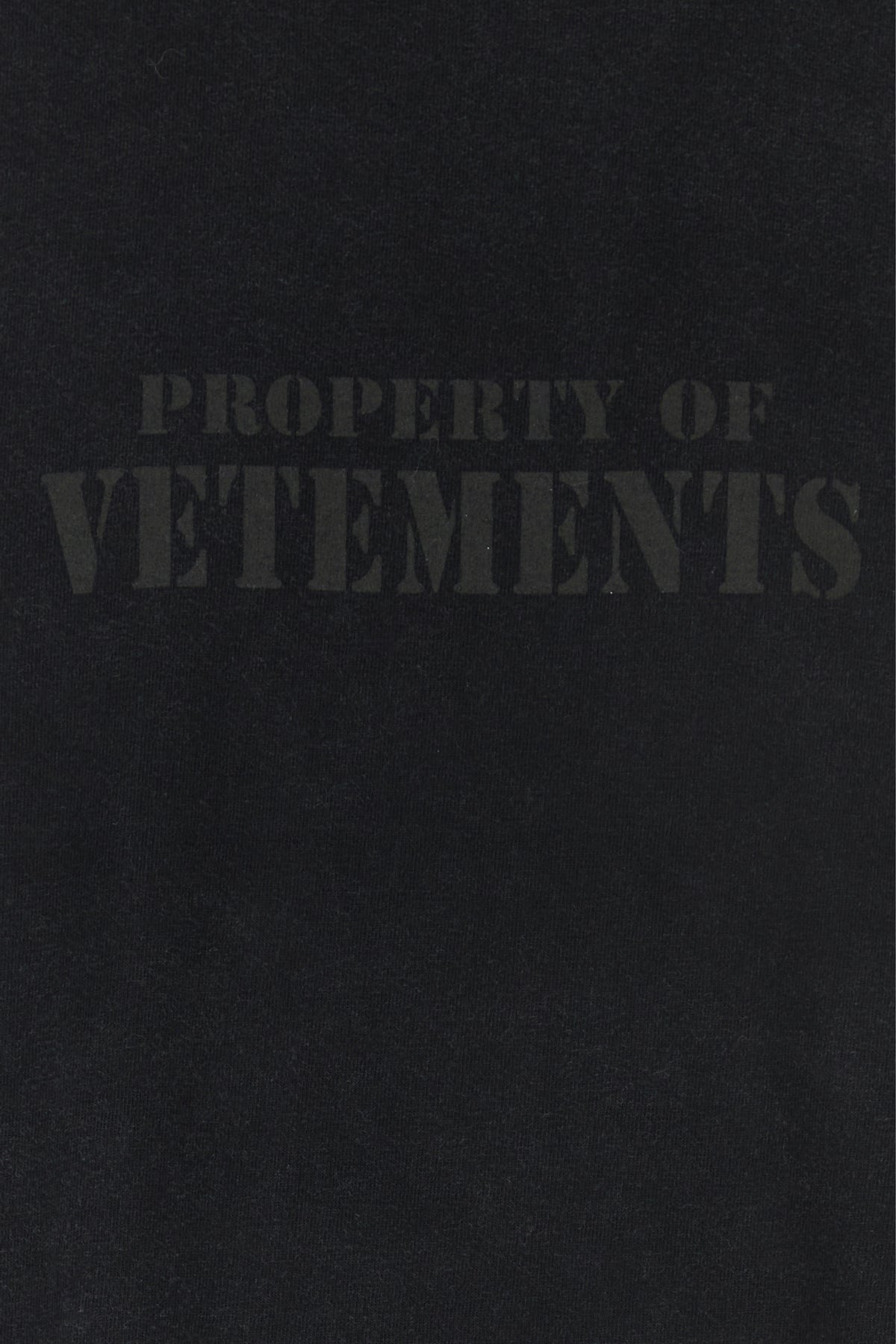 T-shirt realizzata in puro cotone caratterizzata da stampa Property Of Vetements tonale sul petto e logo ricamato tonale sulla manica.