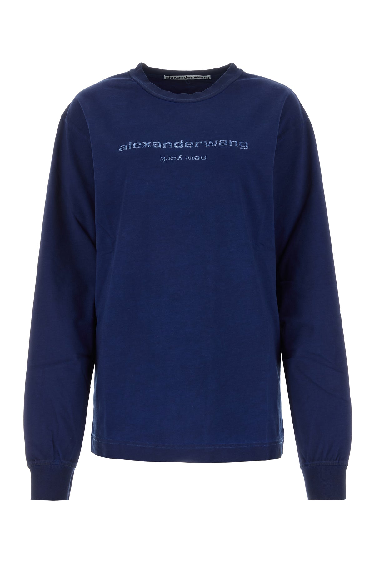T-shirt oversize a maniche lunghe realizzata in puro cotone caratterizzata da stampa logata glitterata sulla parte frontale.