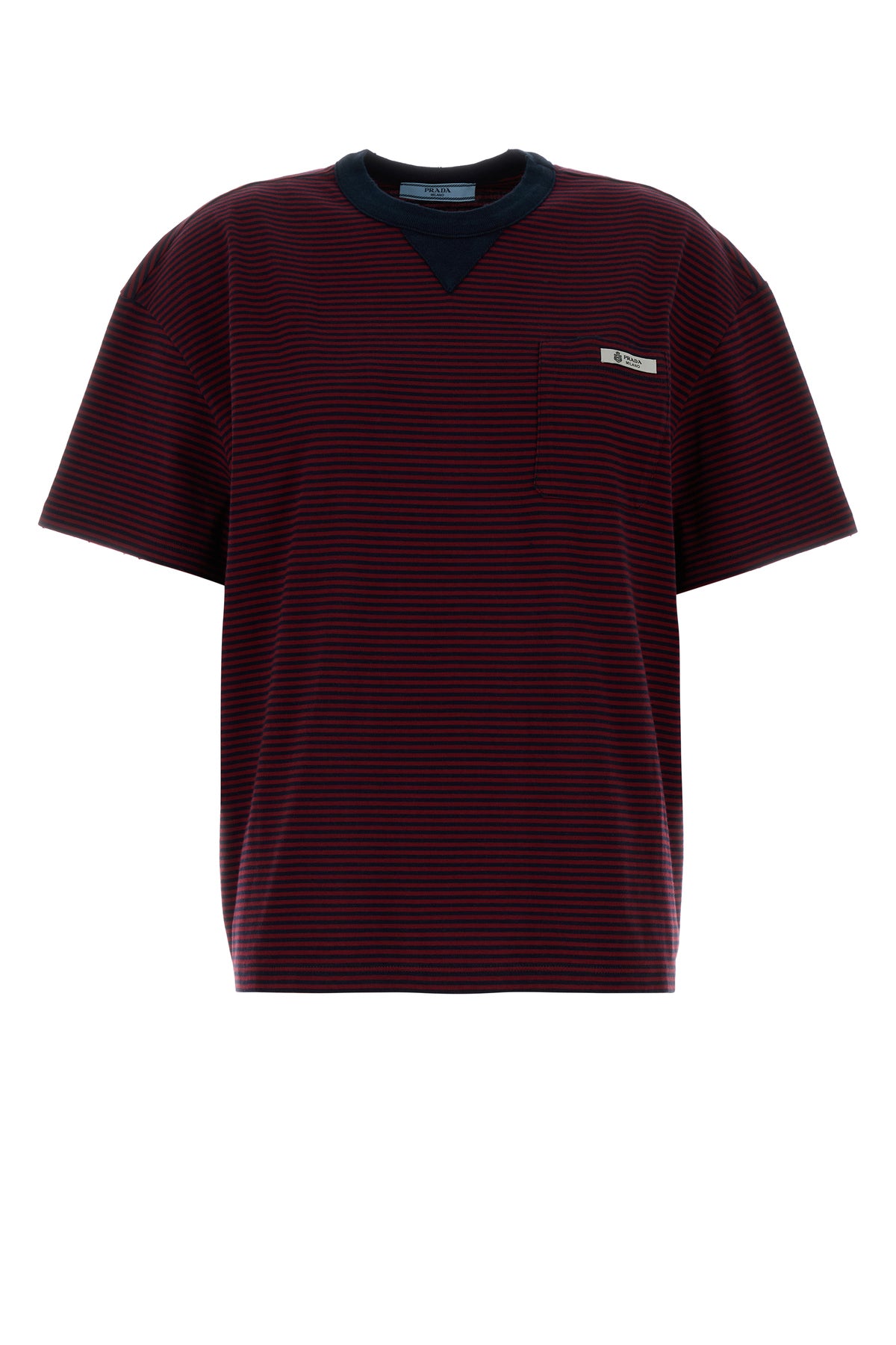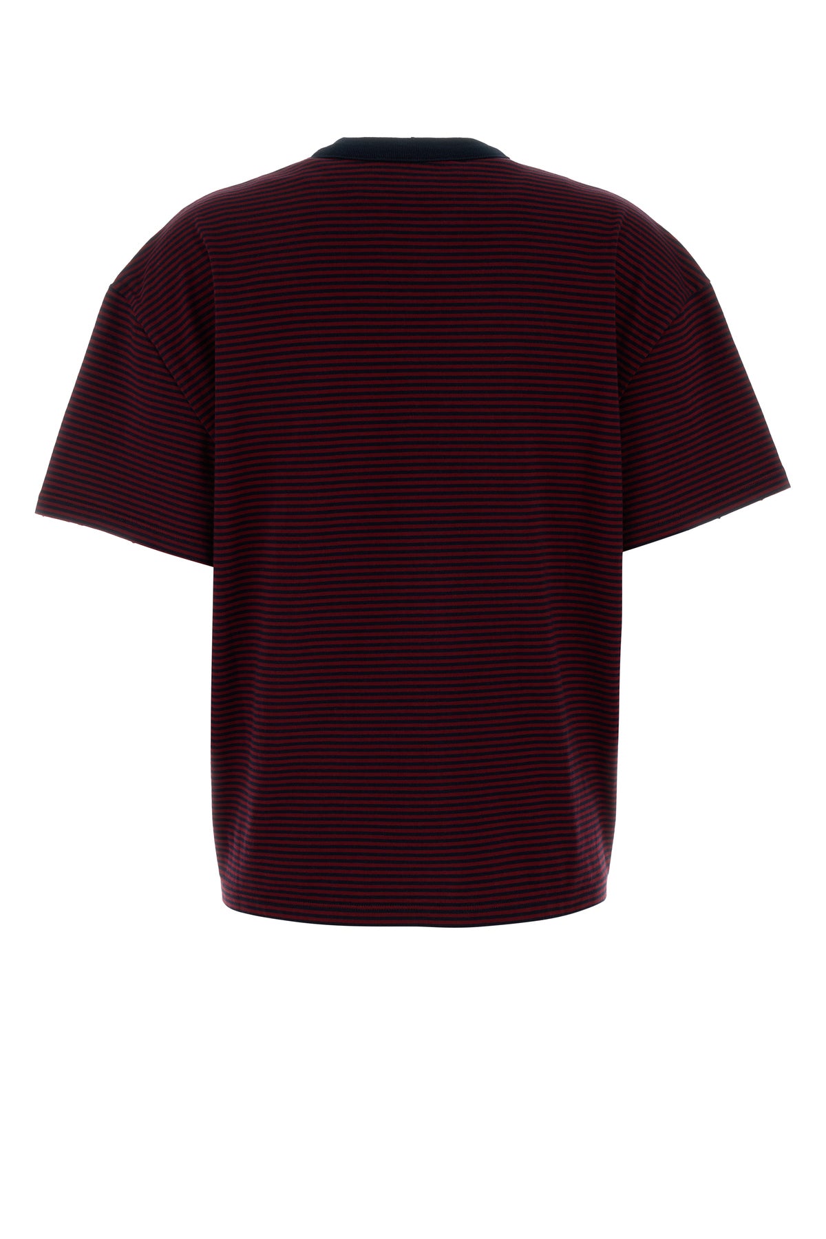 T-shirt oversize realizzata in puro cotone caratterizzata da ricamo a righe su tutta la superficie arricchita da etichetta logata sul petto.