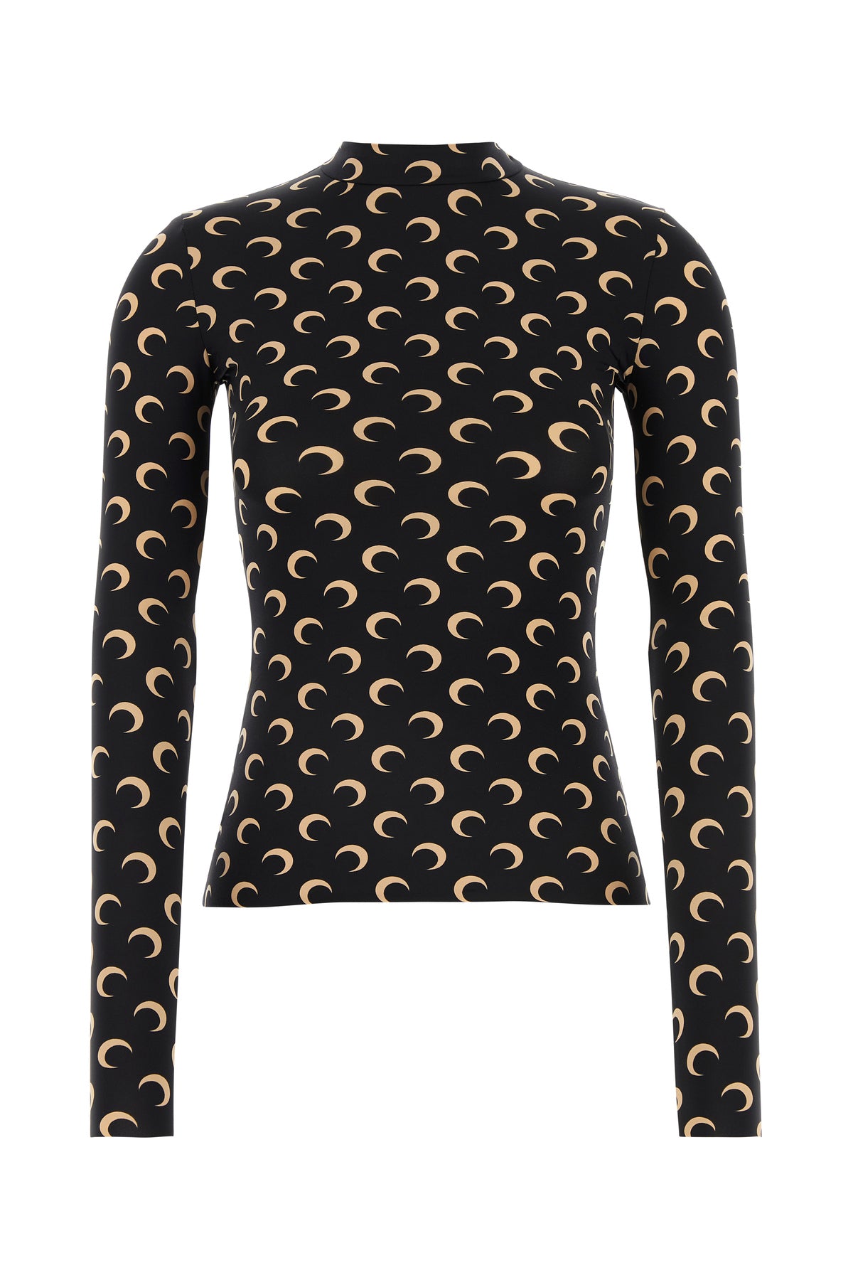 Top realizzato in nylon stretch riciclato caratterizzato da logo stampato su tutta la superficie.