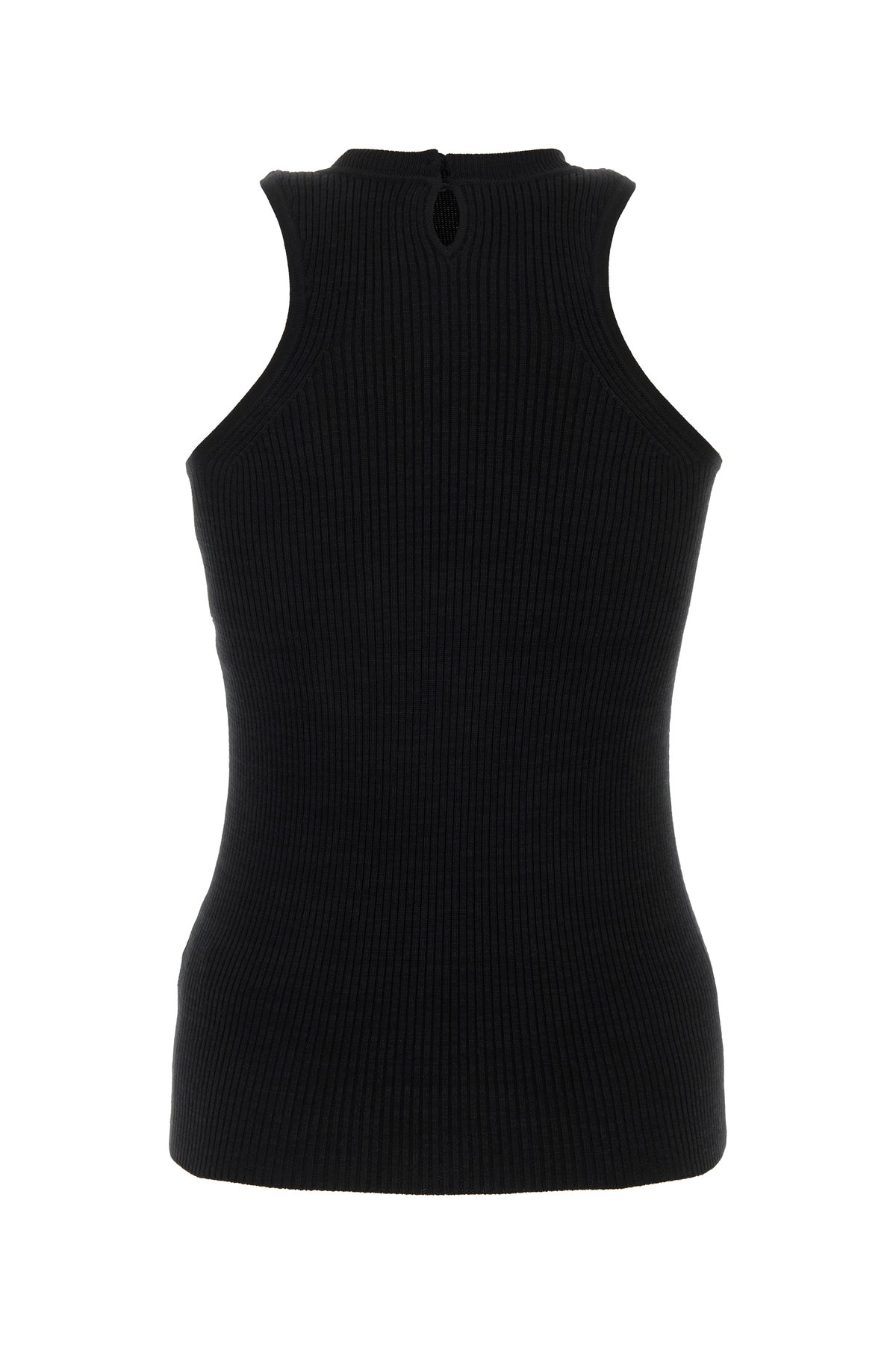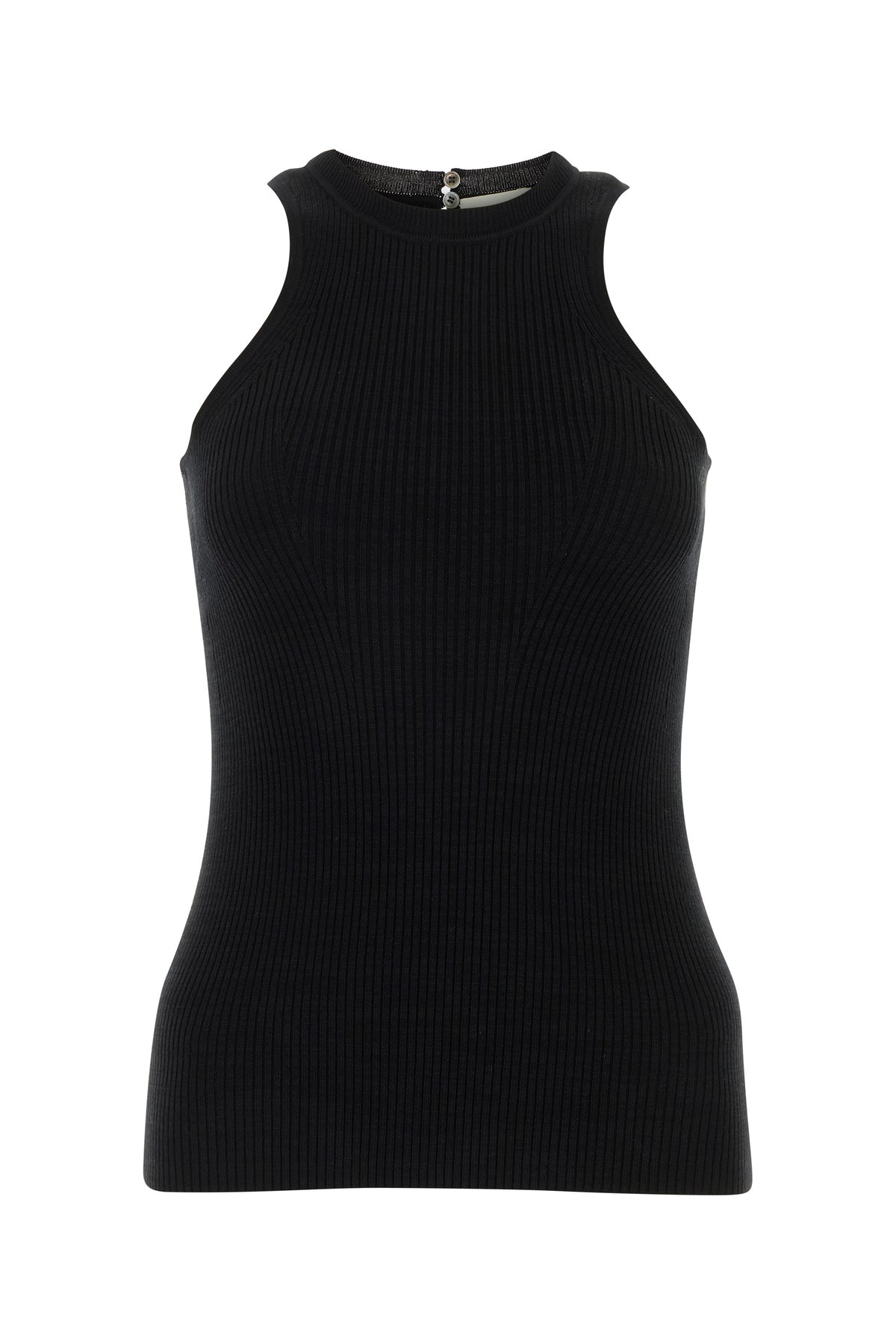 Top realizzato in misto lana stretch a costine caratterizzato da scollatura a vogatore.