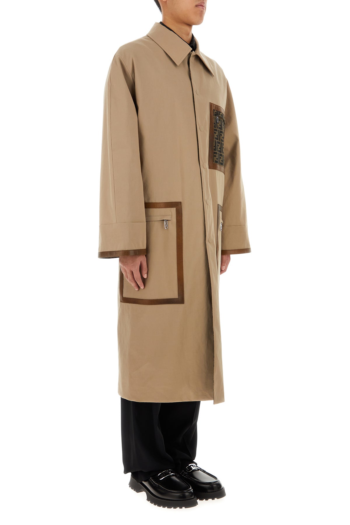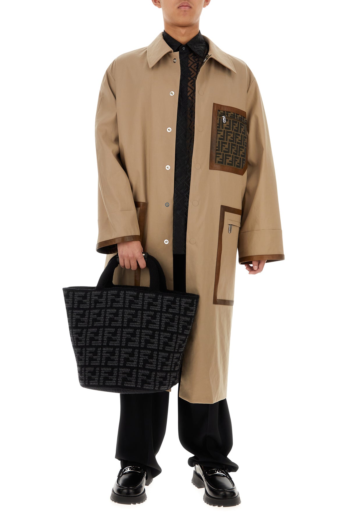 Trench reversibile realizzato in puro cotone con inserti in pelle caratterizzato da tassano sul petto a motivo FF.