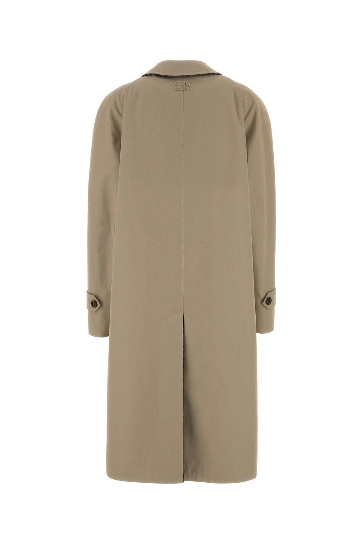 Trench realizzato in gabardine di puro cotone arricchito da applicazione logata tonale sul retro.