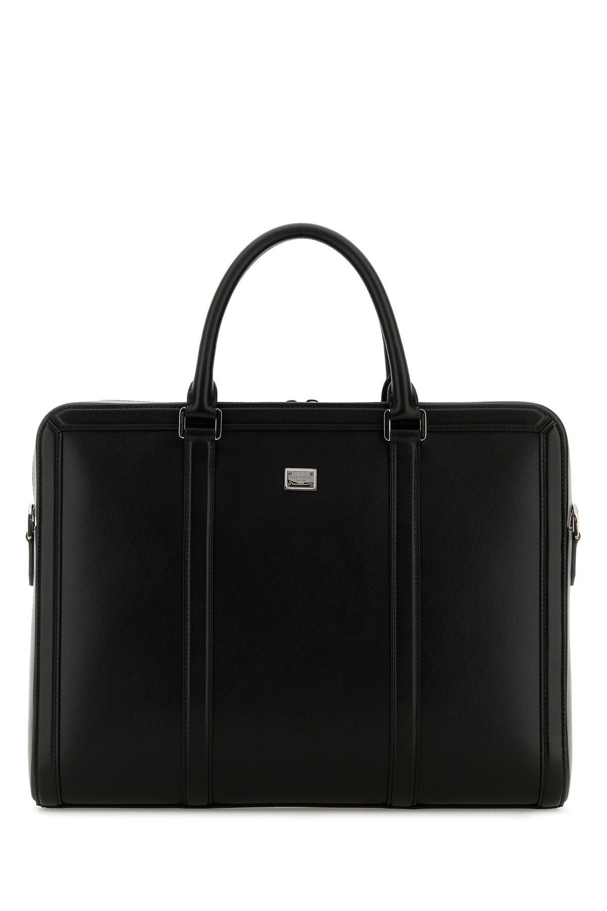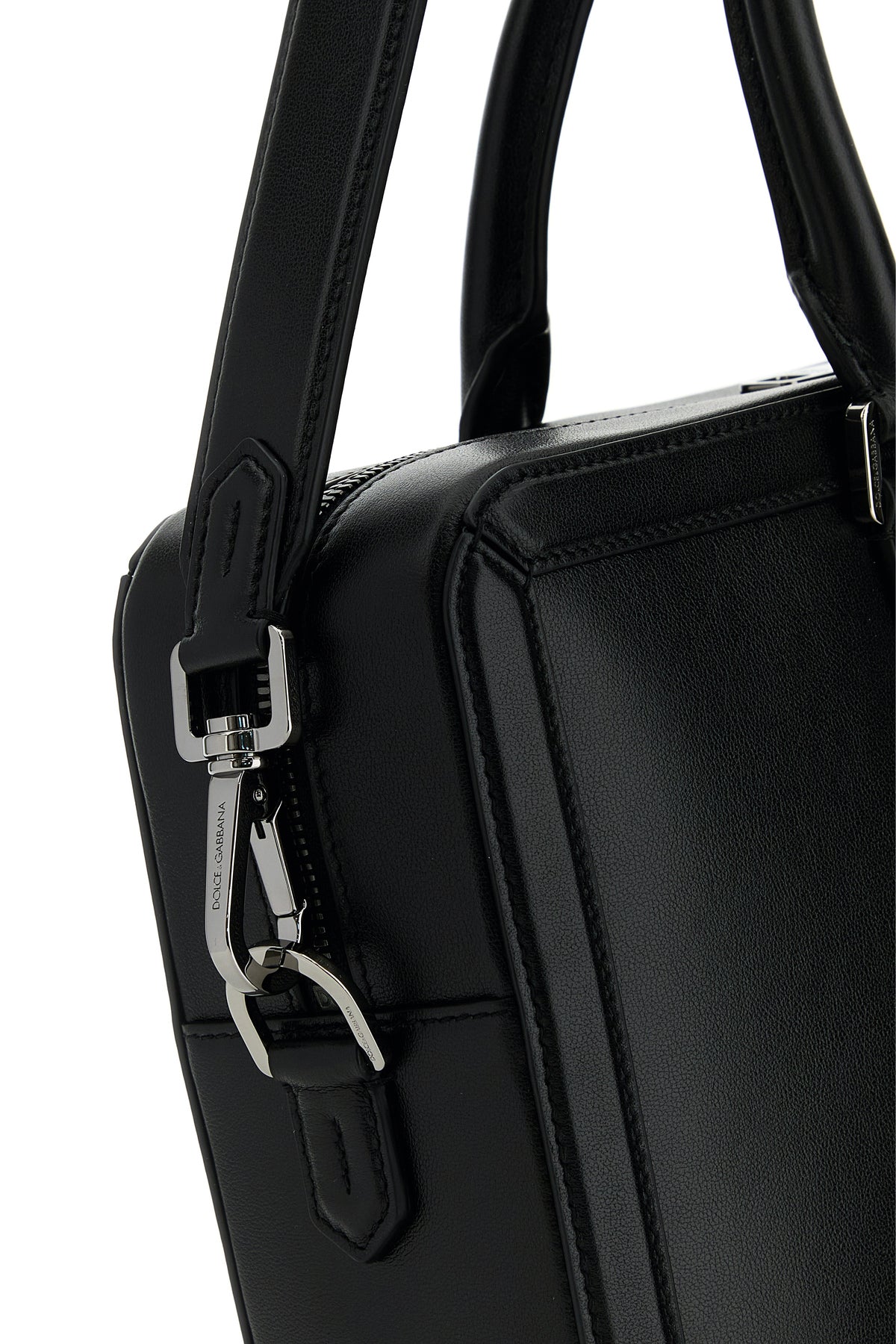 Ventiquattrore realizzata in pelle di vitello leggermente martellata arricchita da targhetta metallica logata sulla parte frontale.