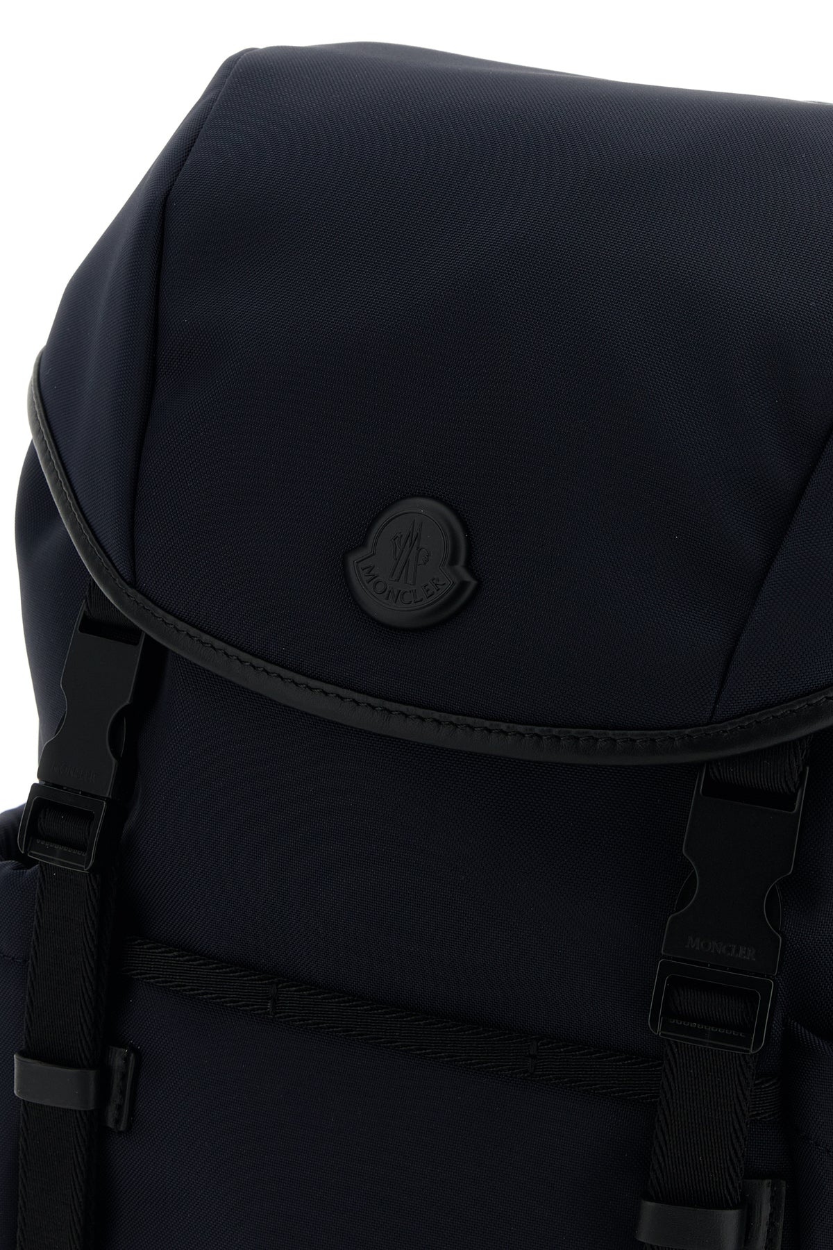 Zaino realizzato in tela arricchito da applicazione logata sulla parte superiore.