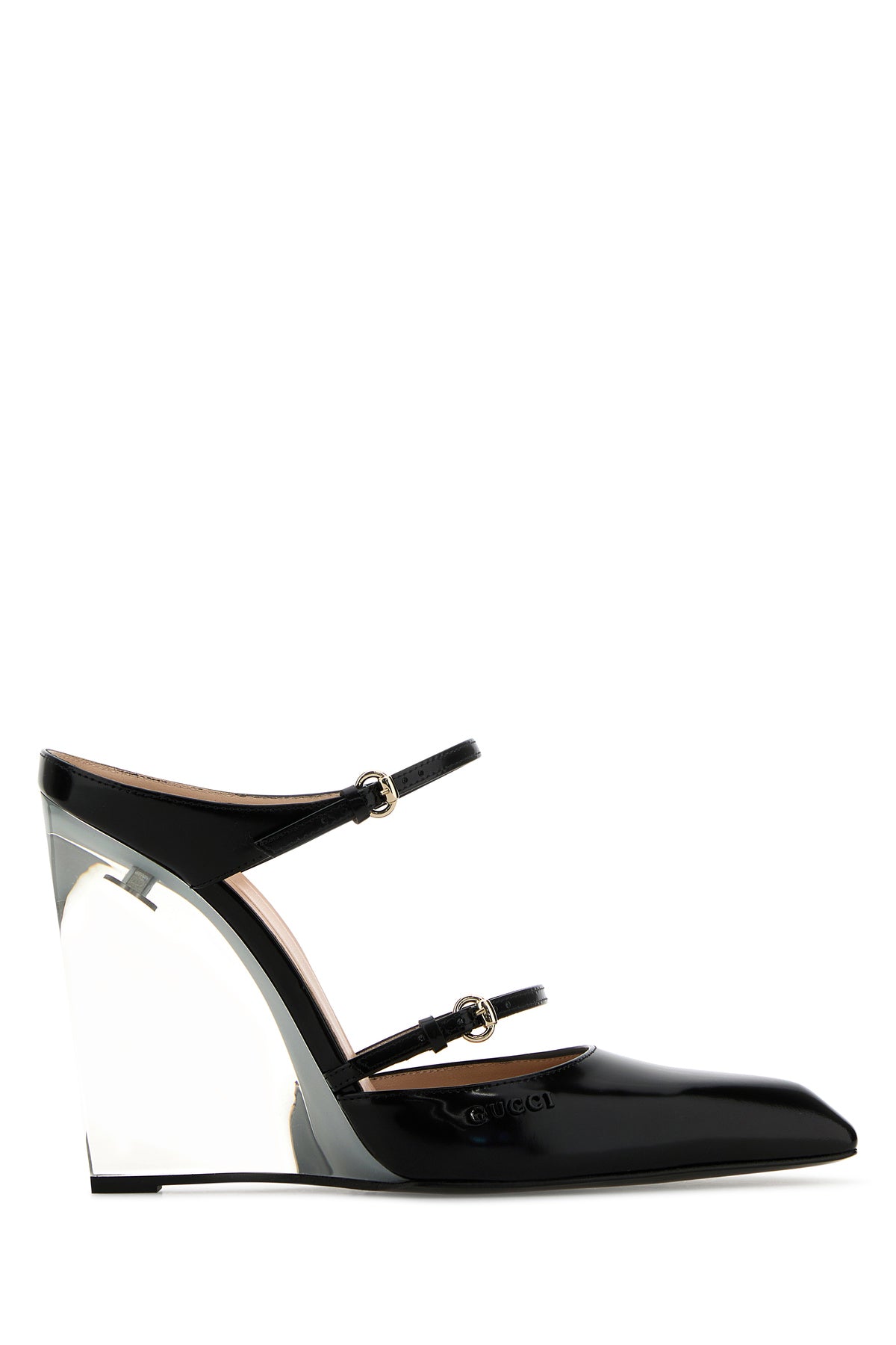 Zeppe realizzate in pelle liscia arricchite da logo in lettere metalliche sul lato.