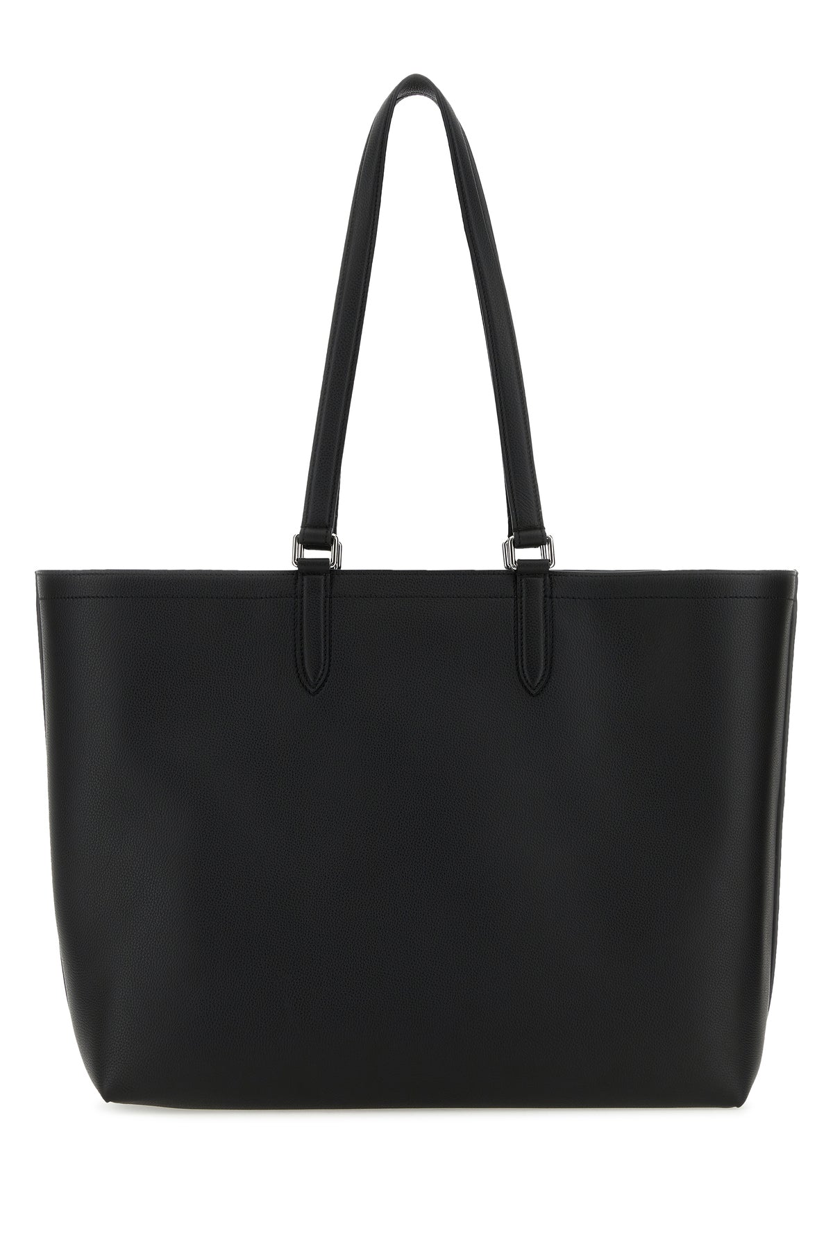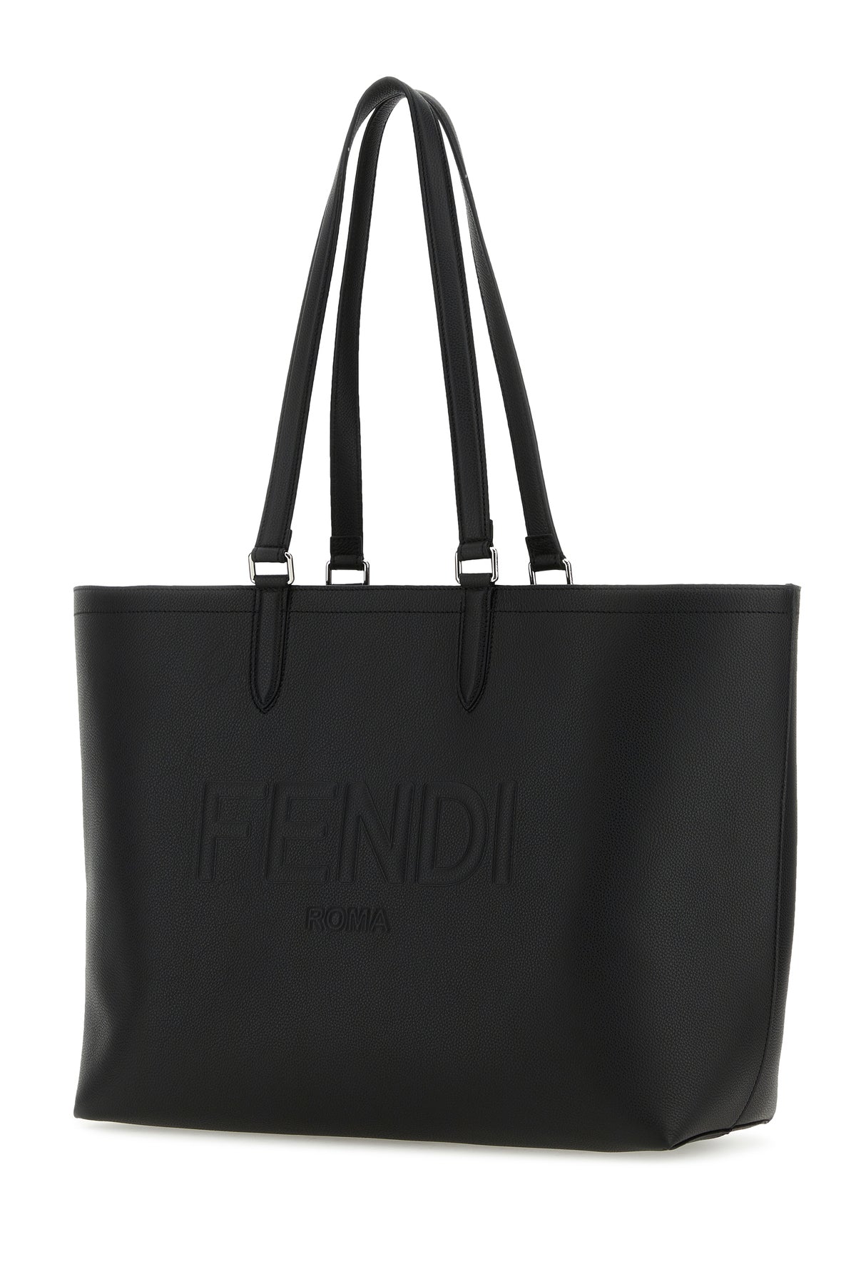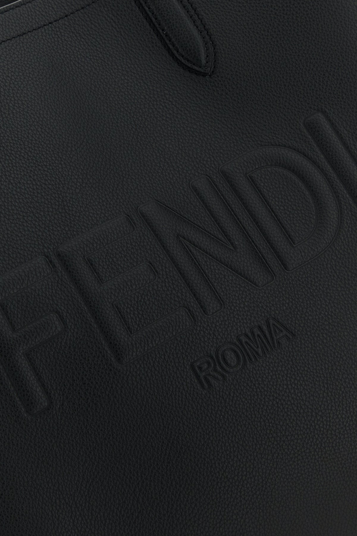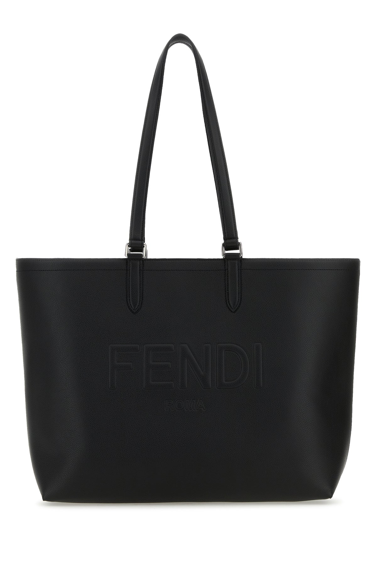Shopping bag realized in pebble leather characterized by in relief logo at the front.