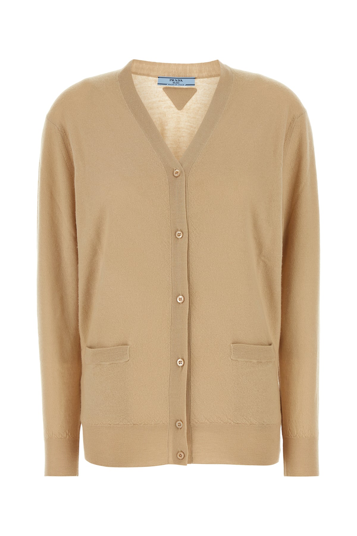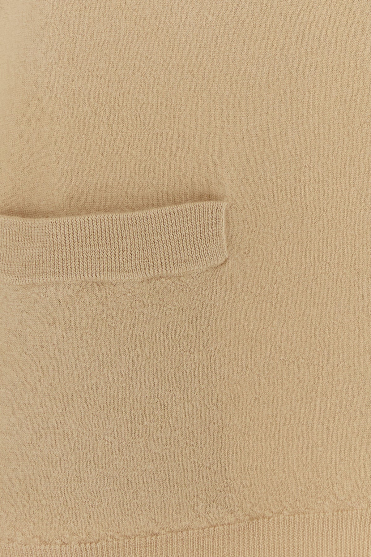 Cardigan realized in pure cashmere enriched by iconic tonal fabric triangle at the back.