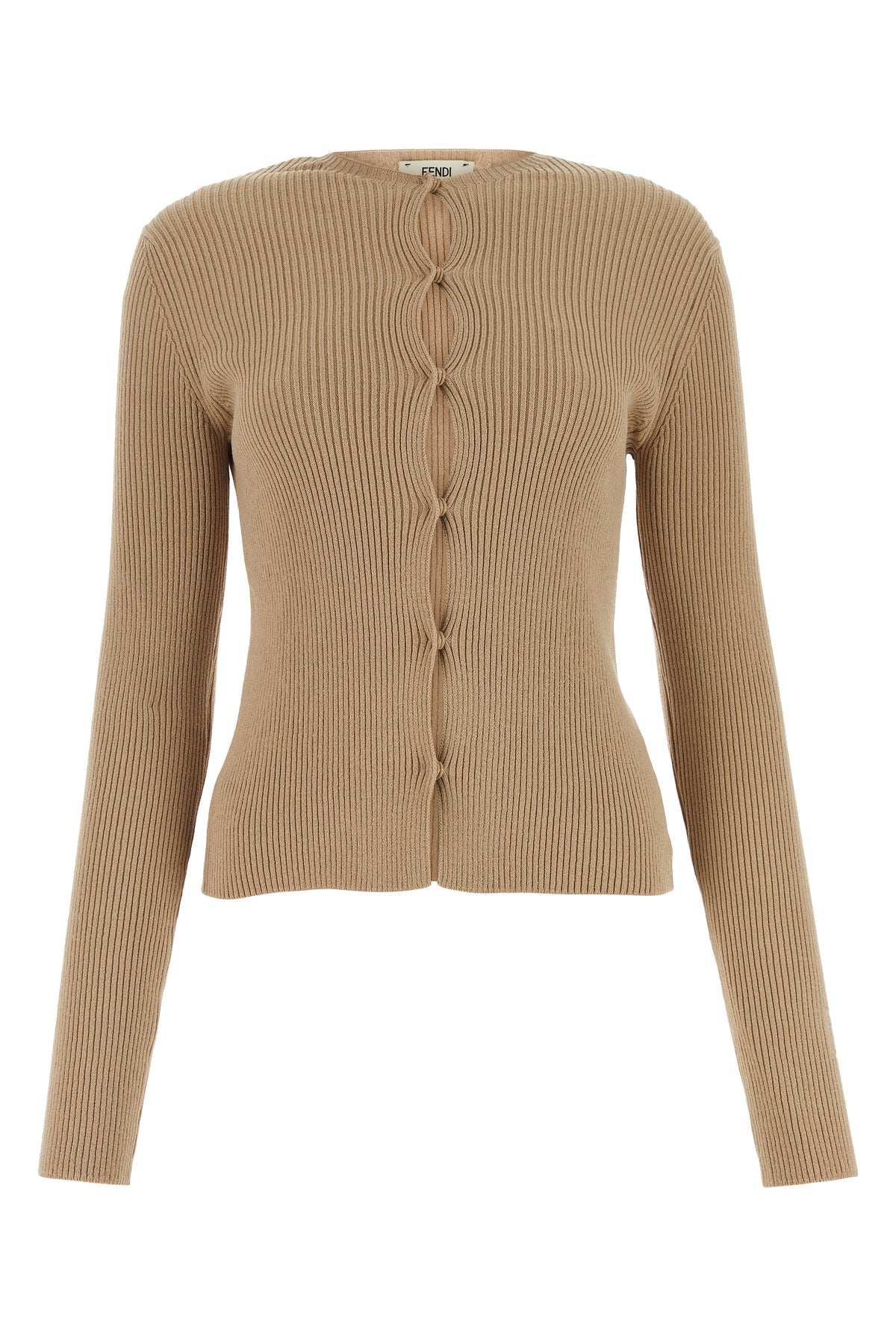 Cardigan realized in ribbed cotton blend characterized by cut-out details on the shoulders and on the sleeves and tonal FF embroidery on the cuff.