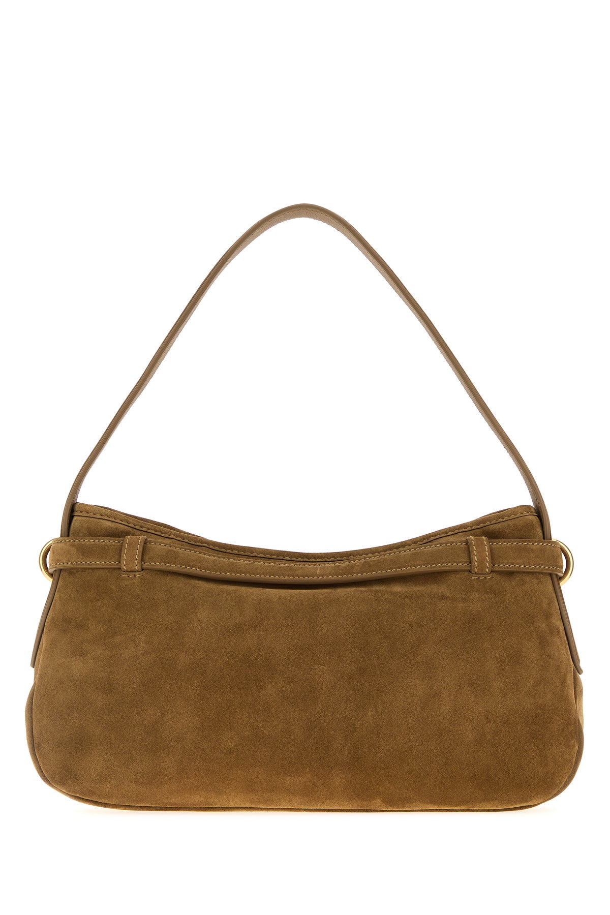 Shoulder bag realized in suede characterized by logo in relief at the front enriched by decorative strap.