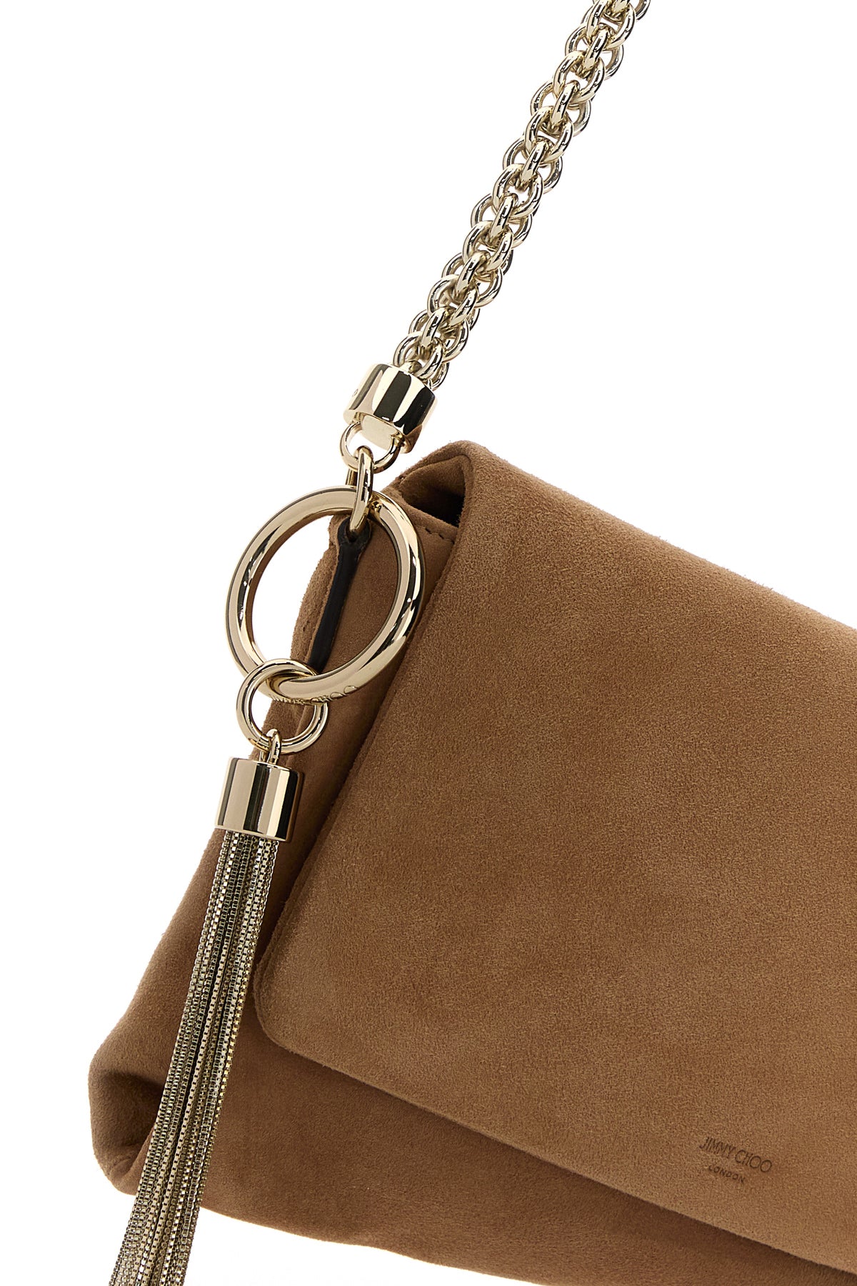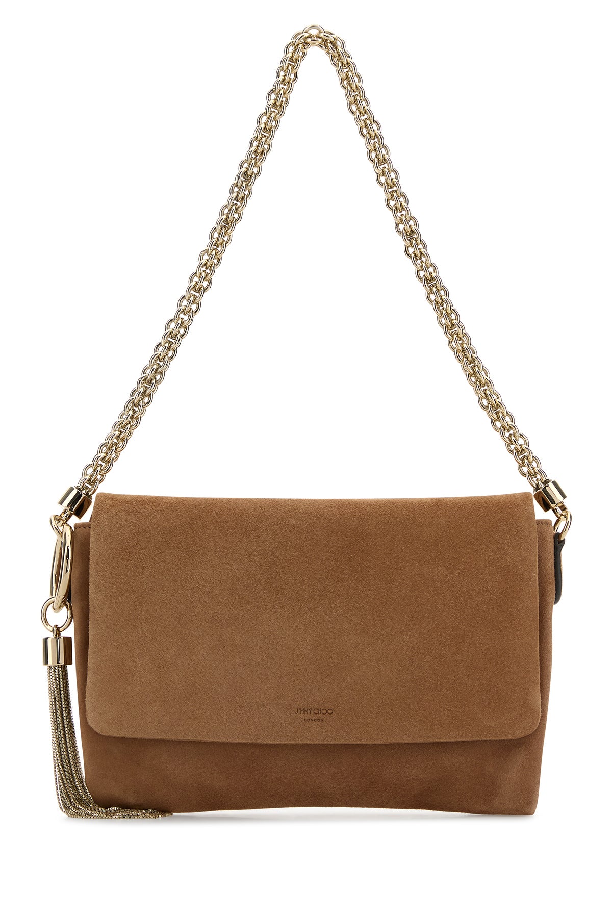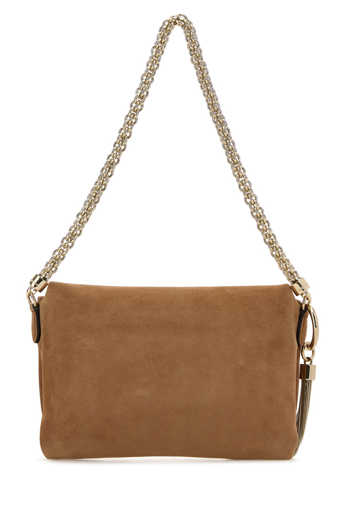 Shoulder bag realized in suede characterized by embossed logo on the flap.