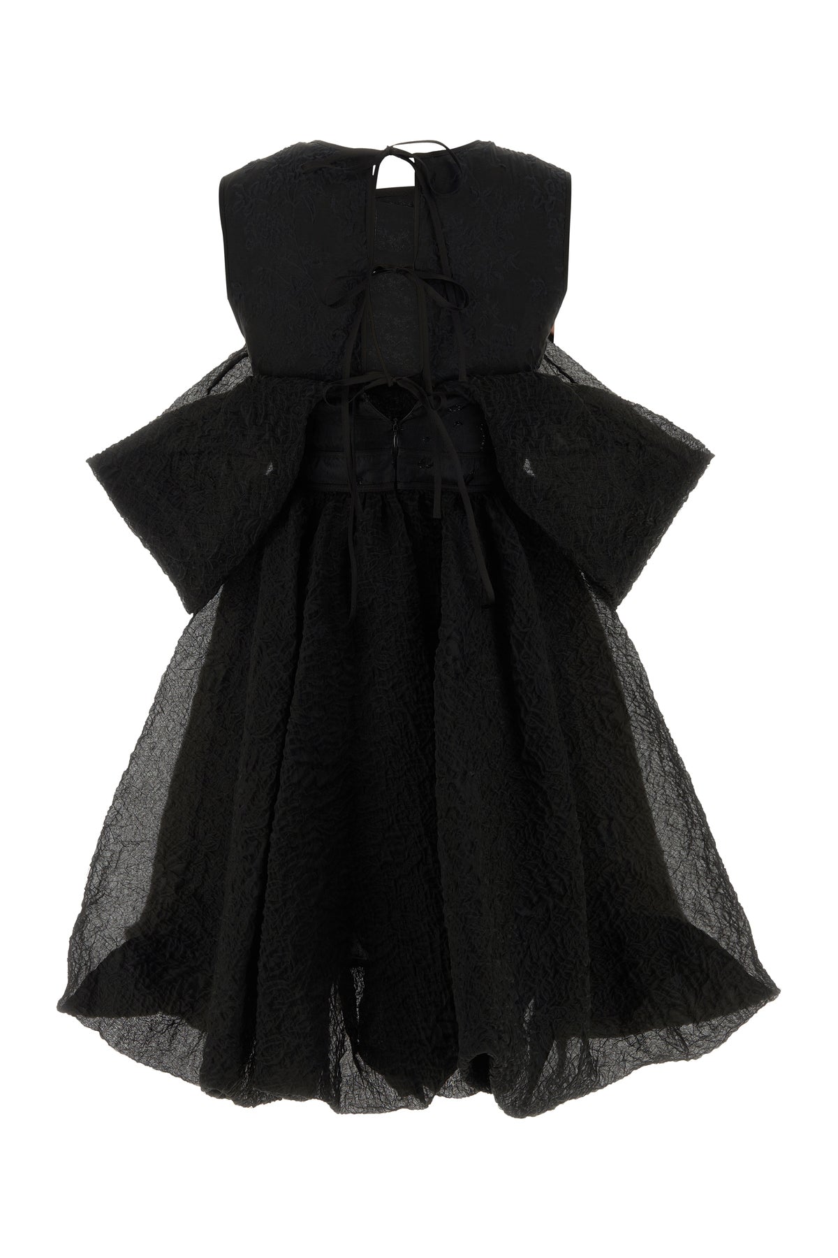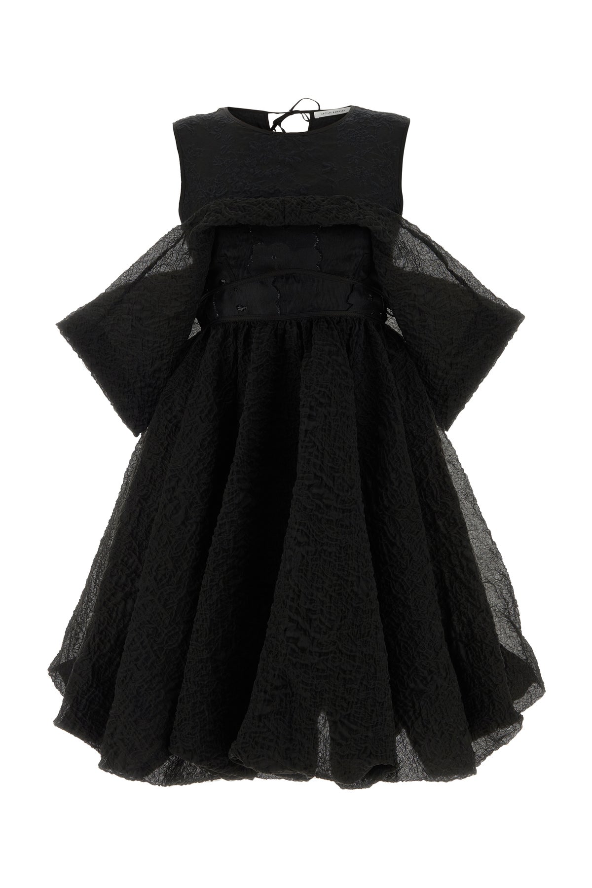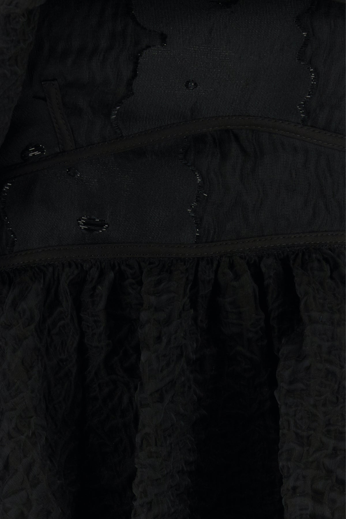 Mini dress realized in creased effect cotton blend with tonal insert with tonal lurex threads at the front and at the back.